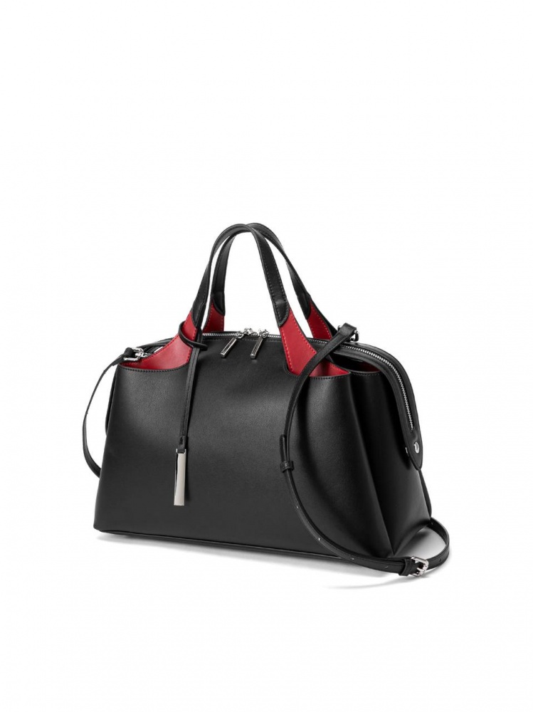 The purse has one big compartment + one inside pocket with zipper. Closure with zipper.