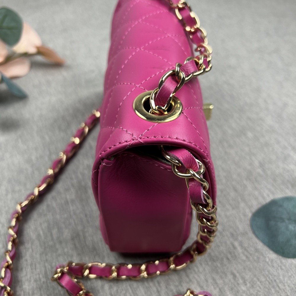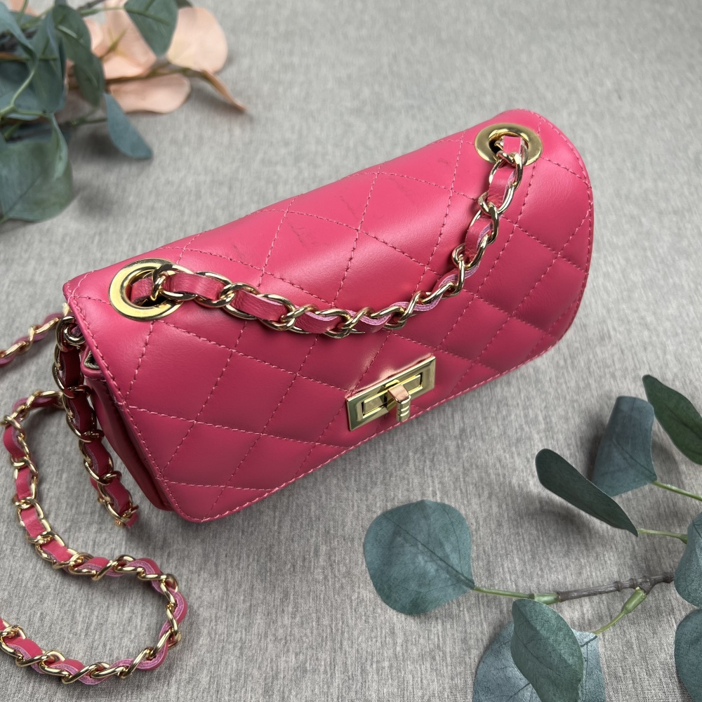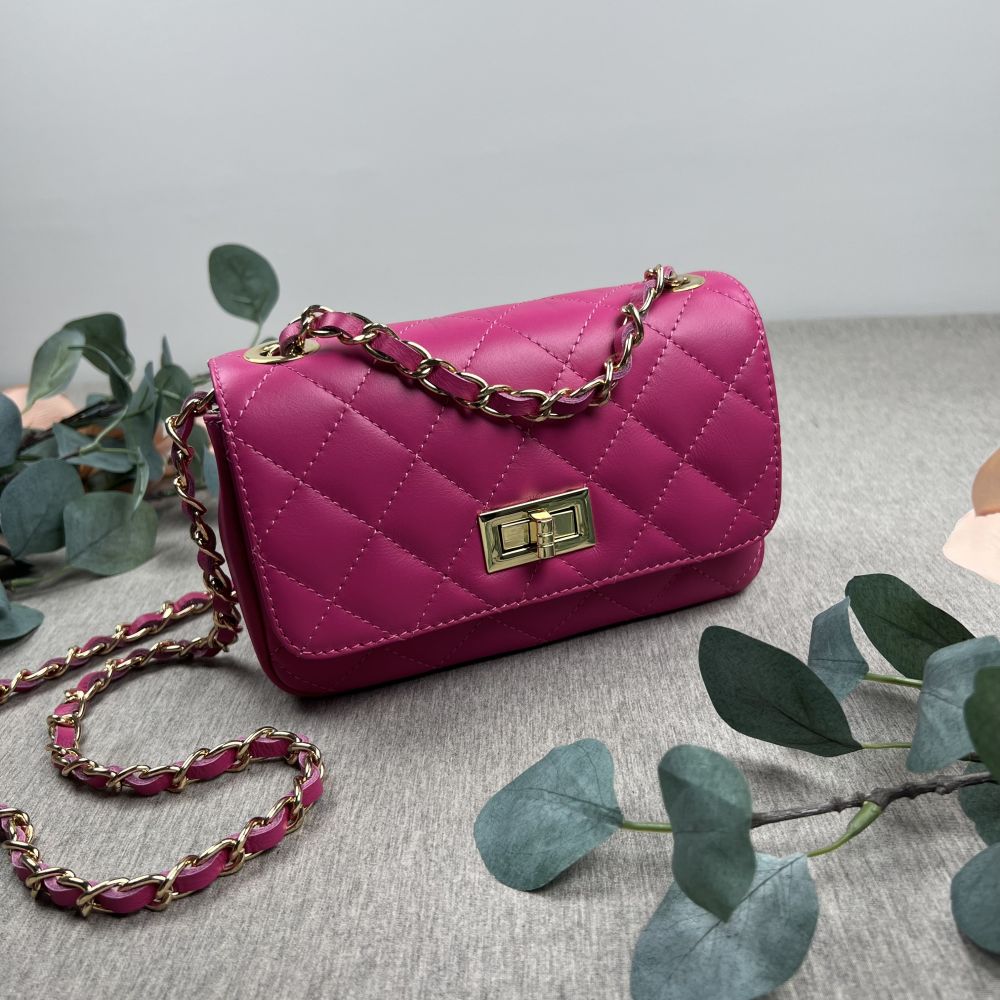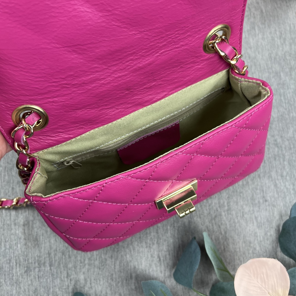 Leather shoulder bag, FUCHSIA