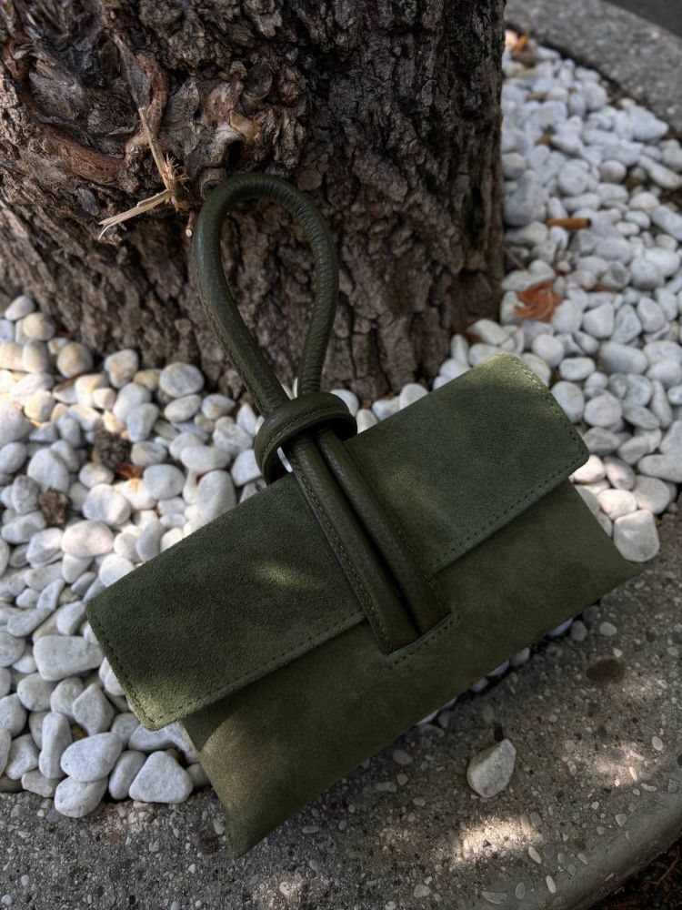 Suede leather clutch bag, OLIVE