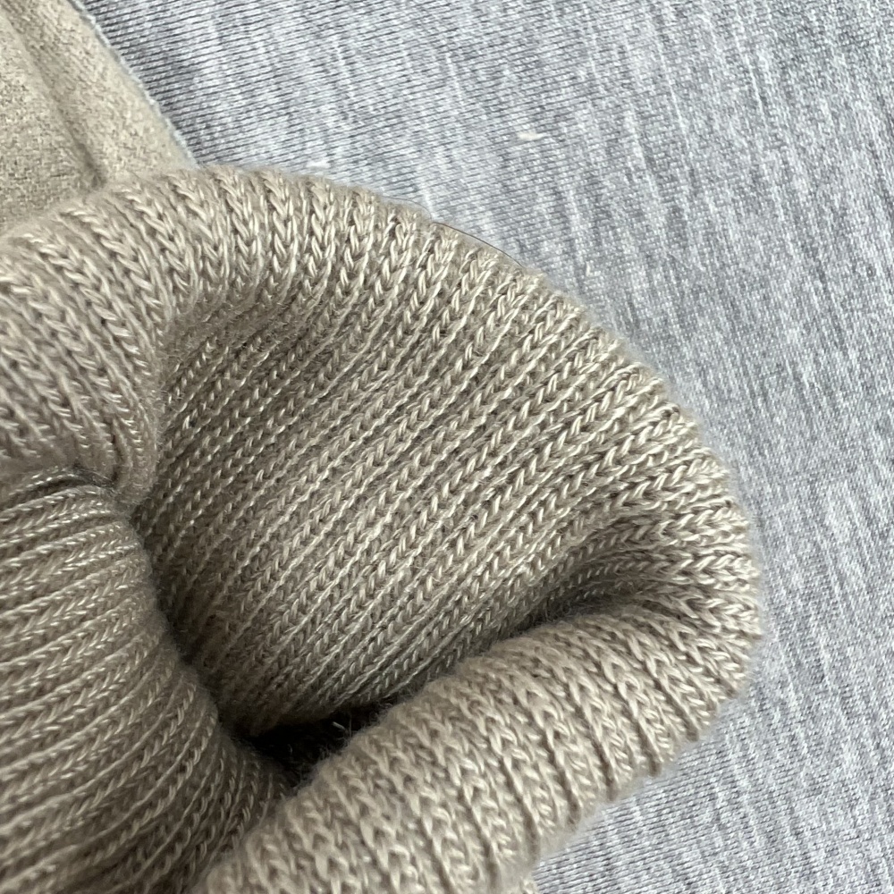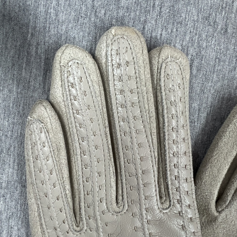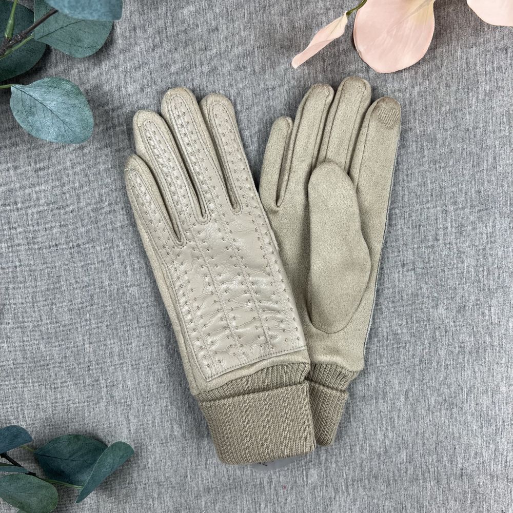Smooth leather on the top, suede on the palm. Acrylic knit inside.
