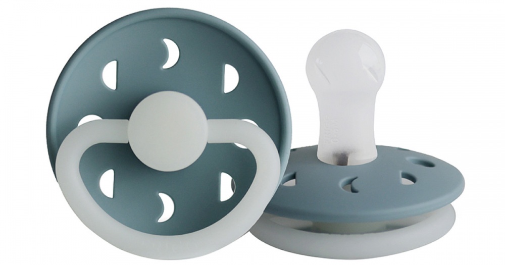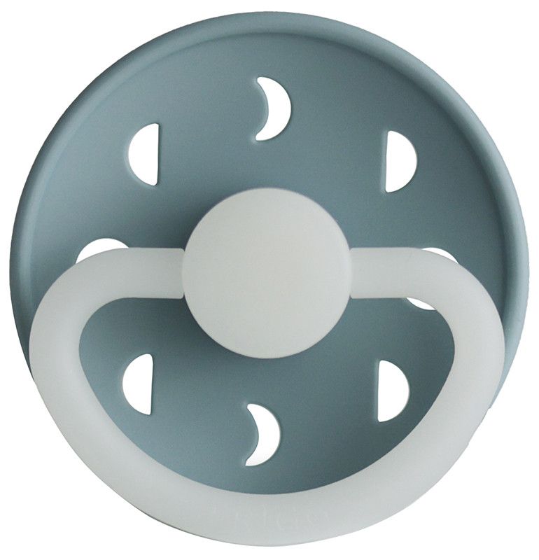 FRIGG Night pacifier with a glow-in-the-dark function. The handle and knob will glow in the dark and solve the challenge of finding and placing your baby’s pacifier in the middle of the night.