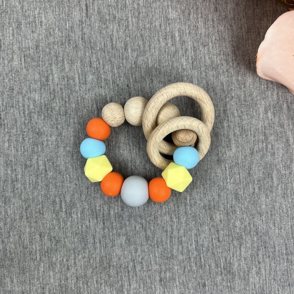 Silicone/wooden baby rattle-teether "Orange/Blue/Yellow/Gray"