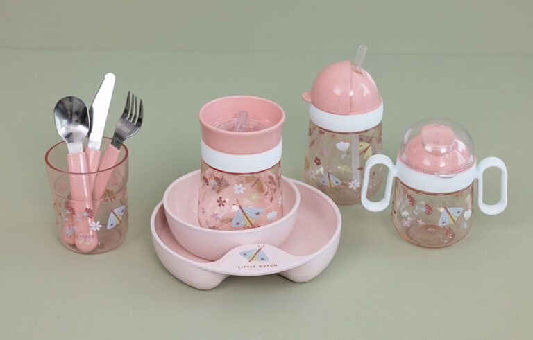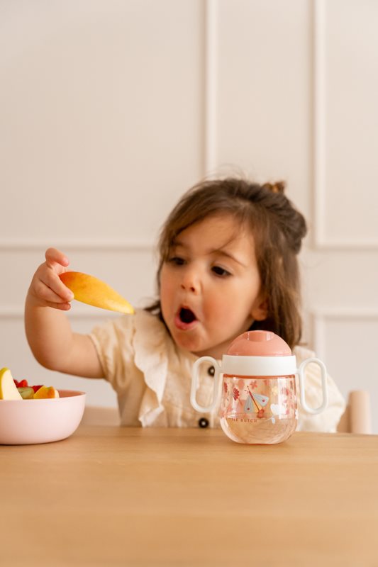The two handles make the cup easy to hold by small baby hands. This sippy cup is decorated by the illustrations of the Flowers & Butterflies collection to help encourage your little one.