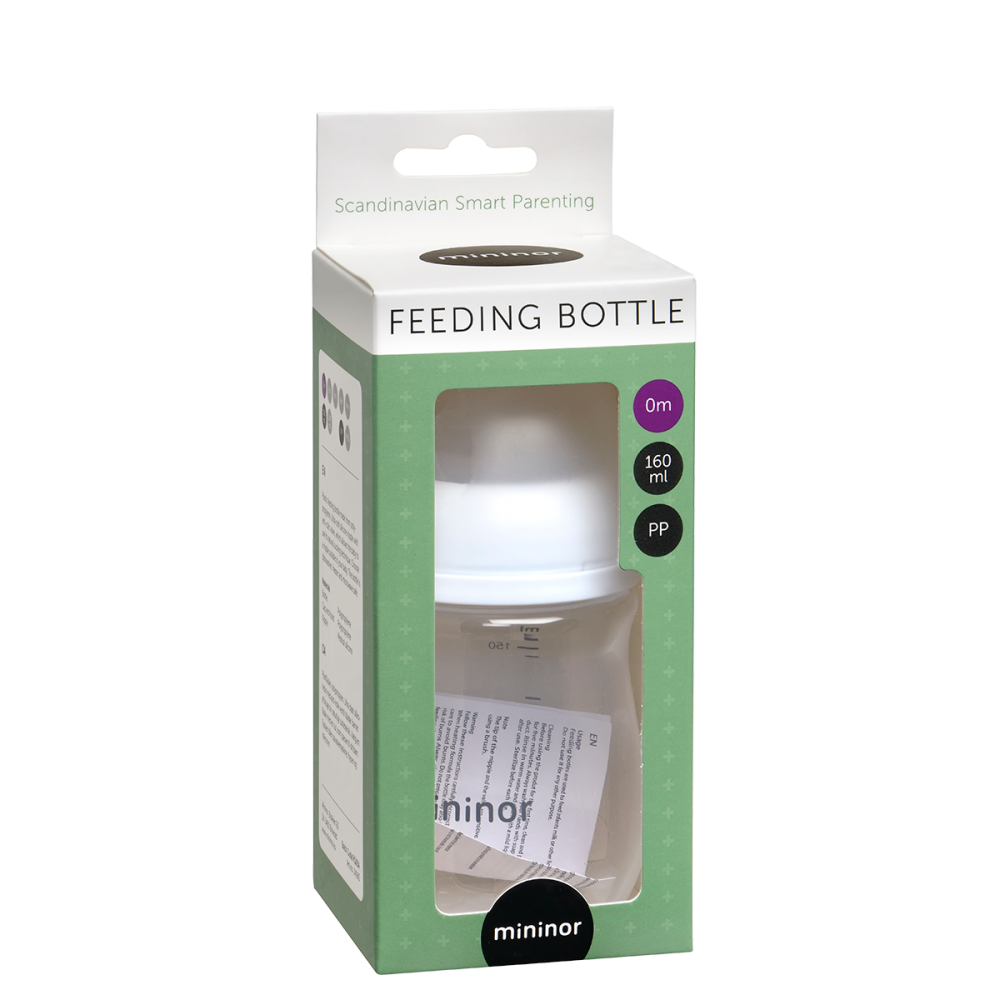 Easy to hold light PP bottle from Mininor. The nipples have anti-colic air valves reducing the air intake.