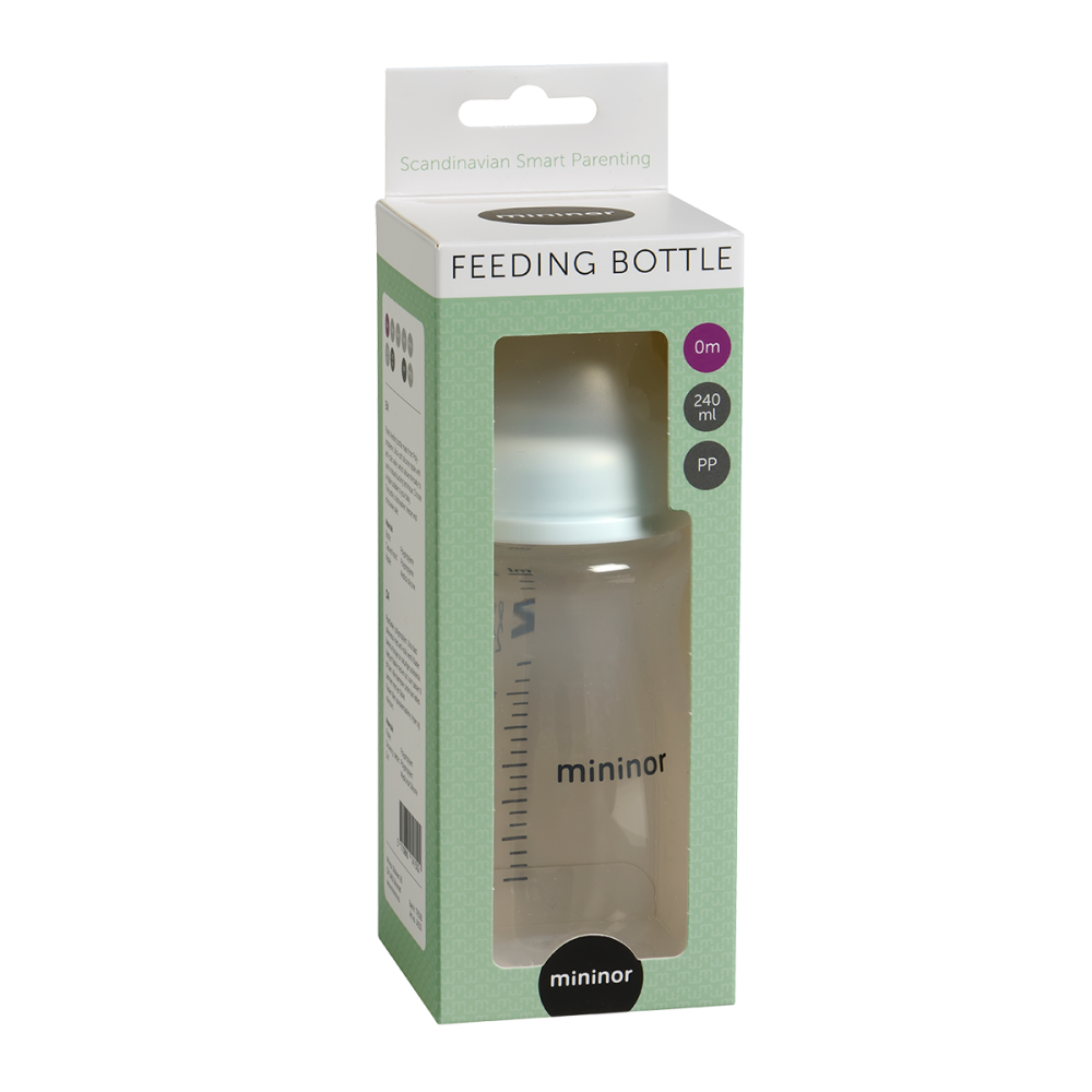 Easy to hold light PP bottle from Mininor. The nipples have anti-colic air valves reducing the air intake.