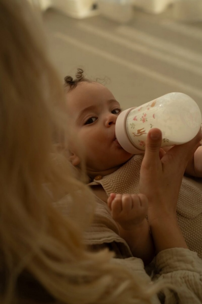 Carefree feeding, a smile on your face. The cute Little Dutch baby bottle 240 ml is specially designed for comfortable feeding. Thanks to the ergonomic design, the bottle stays firmly in the hand and the soft, BPA-free teat offers your child a pleasant drinking experience. The smart and leak-proof valve regulates the movement of air and thus helps to avoid gas and discomfort. The spiral design of the teat prevents blockages and allows your child to drink calmly and evenly. The bottle is made of safe and durable material and is suitable for use in both the microwave and dishwasher. The wide neck makes filling and cleaning particularly easy. The transparent protective cap allows you to carry the bottle hygienically. So every feeding is a moment of love - no matter where you are.