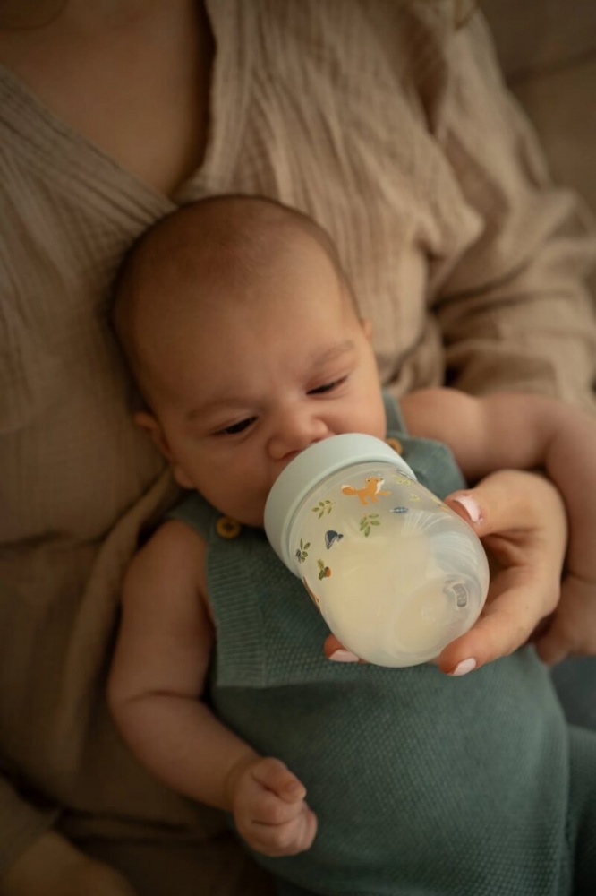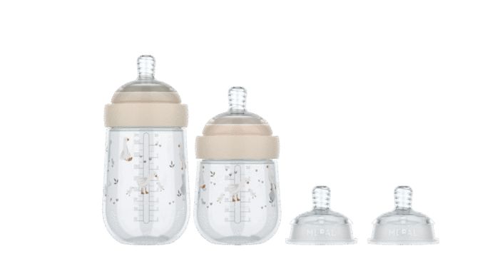 A loving start from the first bottle. The cute Little Dutch bottle starter set is a great choice for parents looking for comfort, simplicity and reliability in feeding. The set includes two bottles - 165 ml and 240 ml - and two medium-flow teats. Ideal for a calm start and to keep up with your baby's growth. The ergonomically shaped bottles sit comfortably in the hand and are equipped with soft, naturally shaped silicone teats. The smart anti-colic valve ensures even air movement and helps reduce gas. The spiral design prevents blockages and ensures a free flow of milk. The wide bottle neck makes filling and cleaning particularly easy. All parts are made of high-quality, BPA-free material and are suitable for use in both the microwave and dishwasher. The cute design makes every feeding special - again and again.