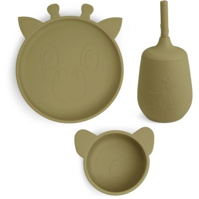 NUUROO silicone plate, snack bowl and cup with straw Olive green