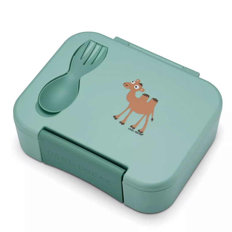We have designed our BentoBOX with kids in mind. All our kids products have bright colours and our much-loved animal illustrations made by the Swedish illustrator, Linn Eldin. Our BentoBOX is a perfect match for kids who don’t want their food mixed, prefer a variety or are fussy eaters. With its three compartments it allows you to make various combinations of nutritious food that will look appetizing by using different shape and colour combinations. Foods such as fruit, veggies, crackers and yogurt can be packed side by side without the risk of getting mixed. The BentoBOX comes with CUTElery™ multi-cutlery fixed in the lid and it is equipped with one locking clip for easy handling. It is non-toxic and BPA-free and can be used over and over again, which makes it a great companion on the go. Perfect for the kids in the playground, on an excursion or during a trip. It has never been easier to skip disposable packaging and get the kids to eat healthy. Design by Carl Oscar® of Sweden.
