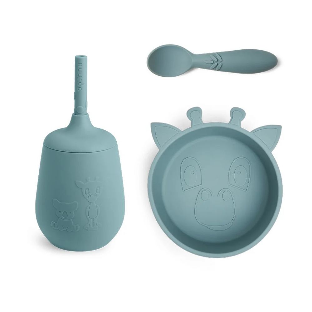 NUUROO silicone bowl,spoon and cup with straw Lead