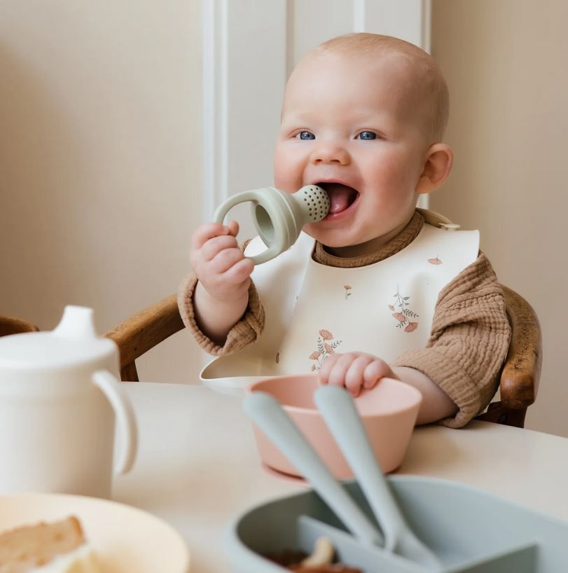 Introduce little foodies to new flavors and textures with our fresh food feeders, designed for safe self-feeding. Made from food grade silicone and featuring an easy-to-clean, two-piece design, this feeder will quickly become a favorite for at-home meals or on-the-go snacks. Its handle is easily held by little fingers as the small holes release the right amount of fresh or frozen favorites from its soft but sturdy design.