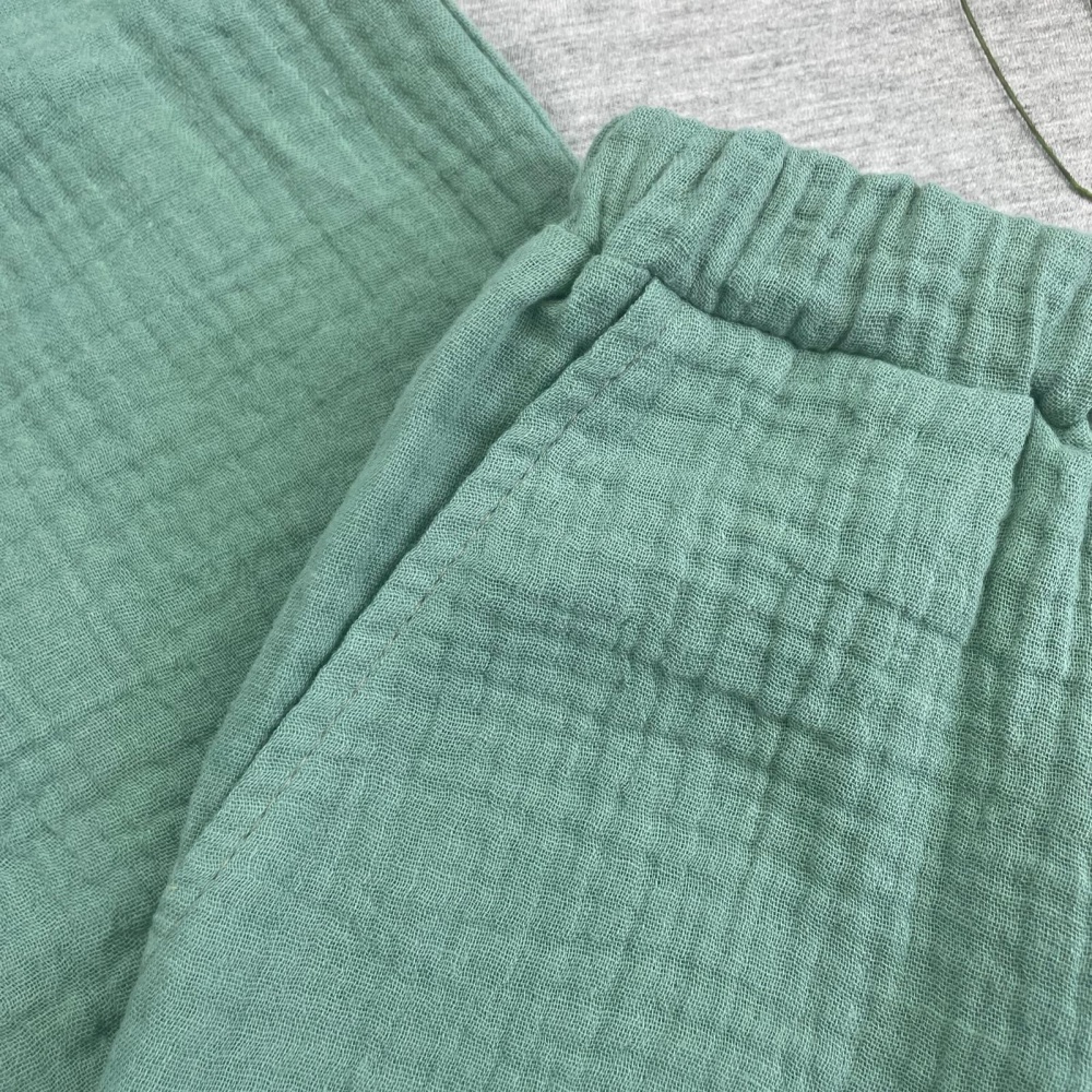 Soft, light and breathable set for a boy made of 100% cotton muslin fabric.