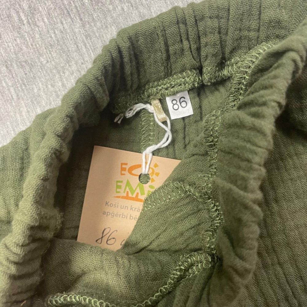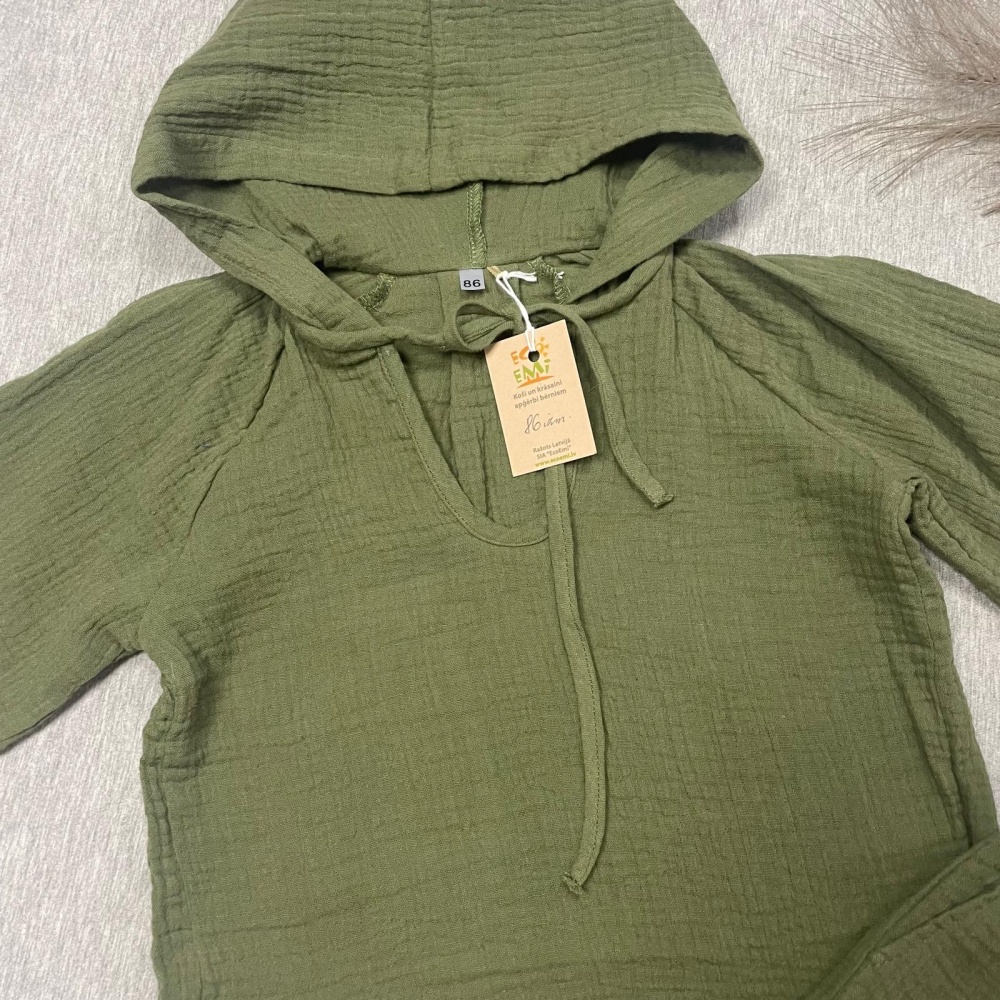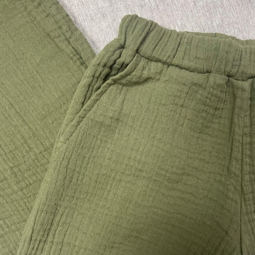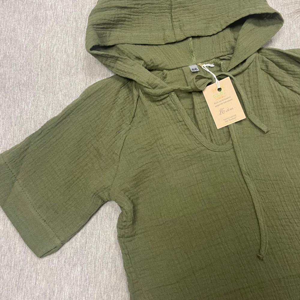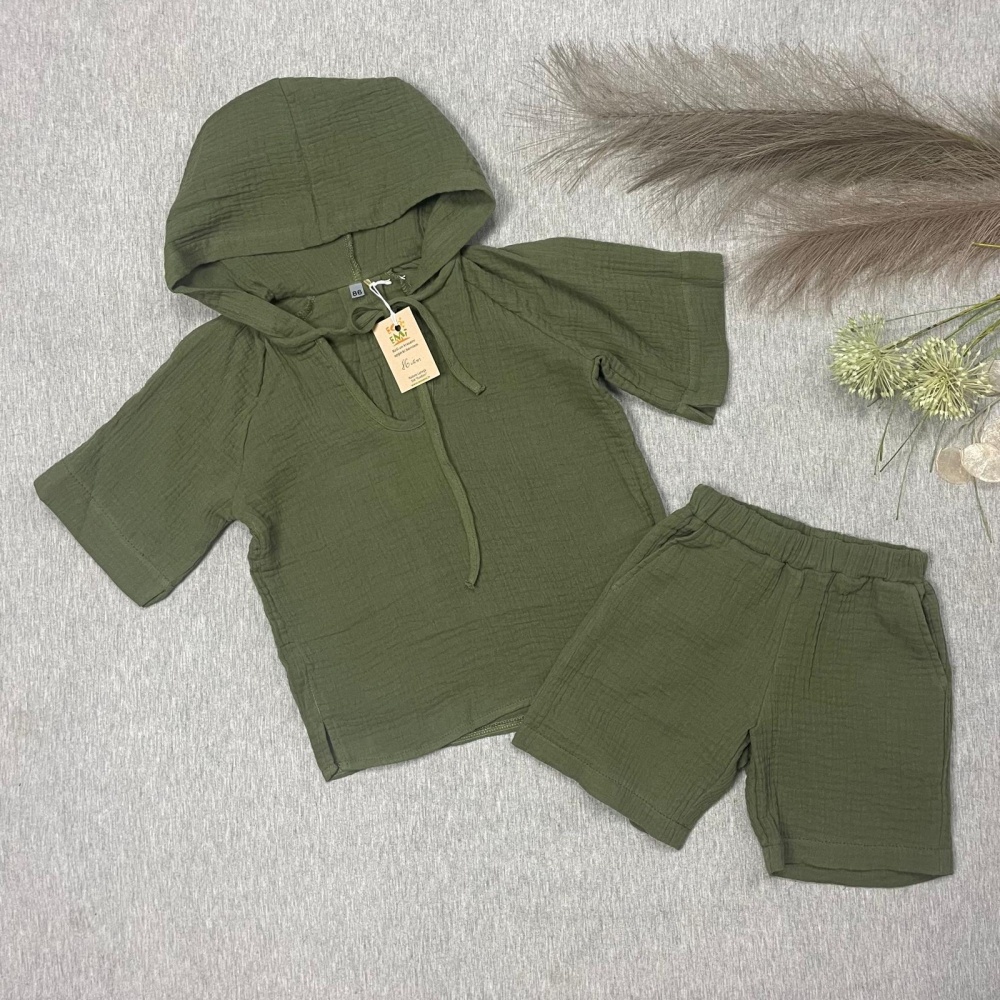 Cotton muslin boy's set: shirt and shorts OLIVE