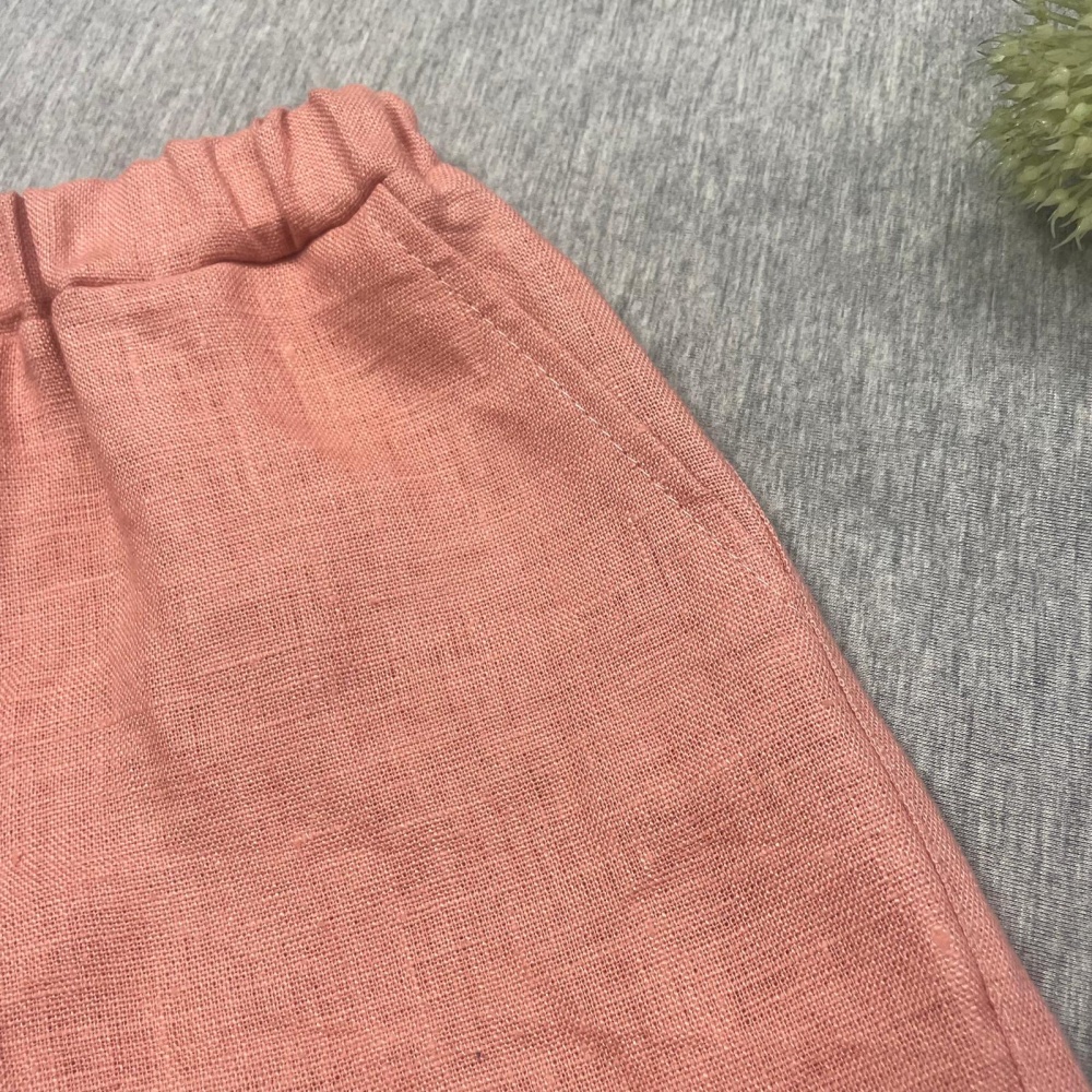 Kids linen shorts with pockets and elastic waistline.