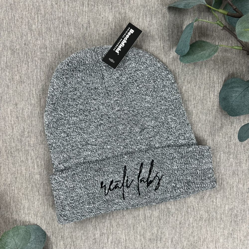 Knitted hat with embroidery REALLY GOOD, gray melange