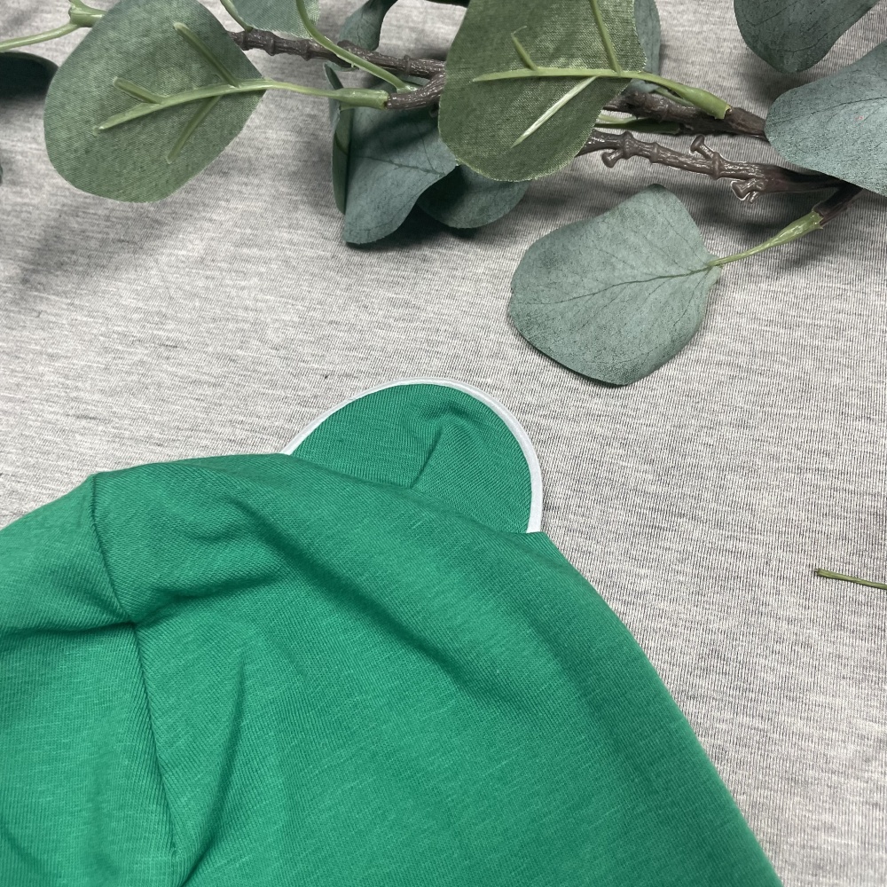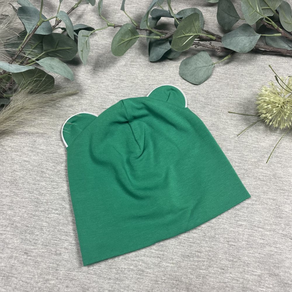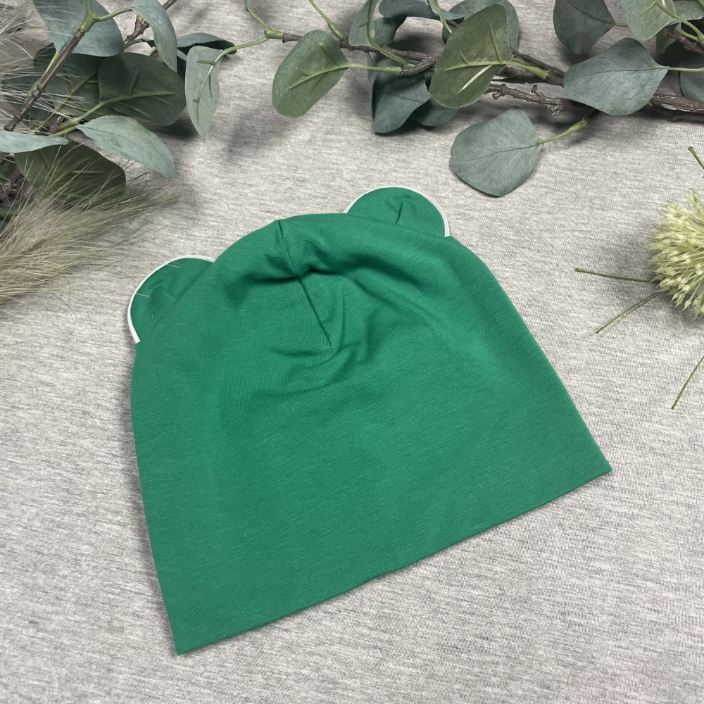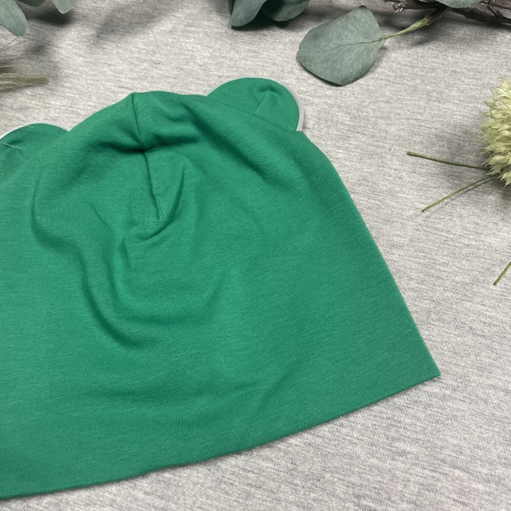Double cotton jersey kids hat with ears, GREEN