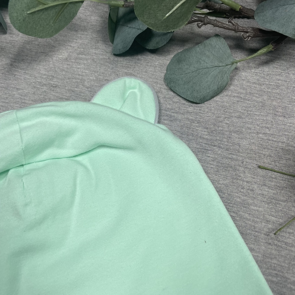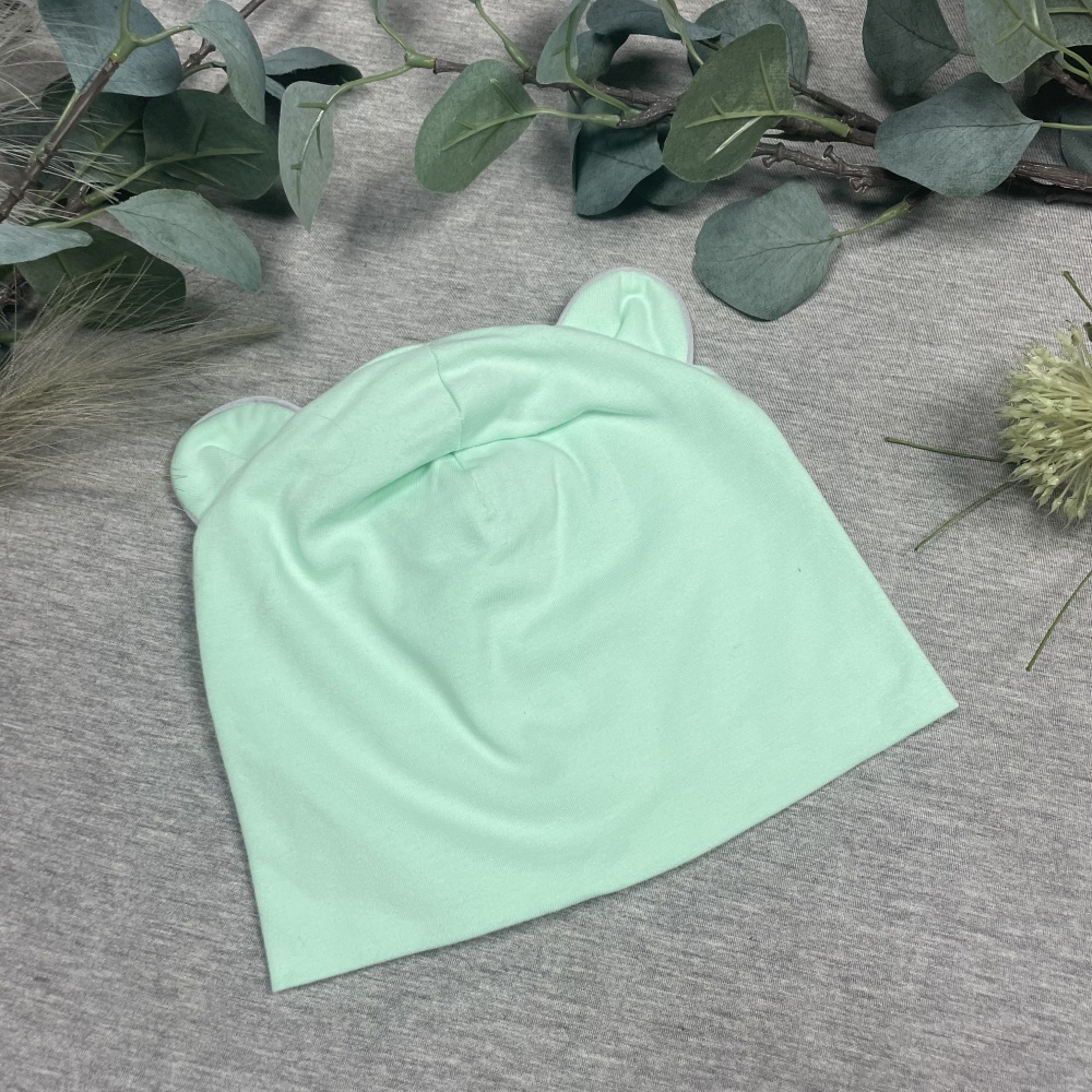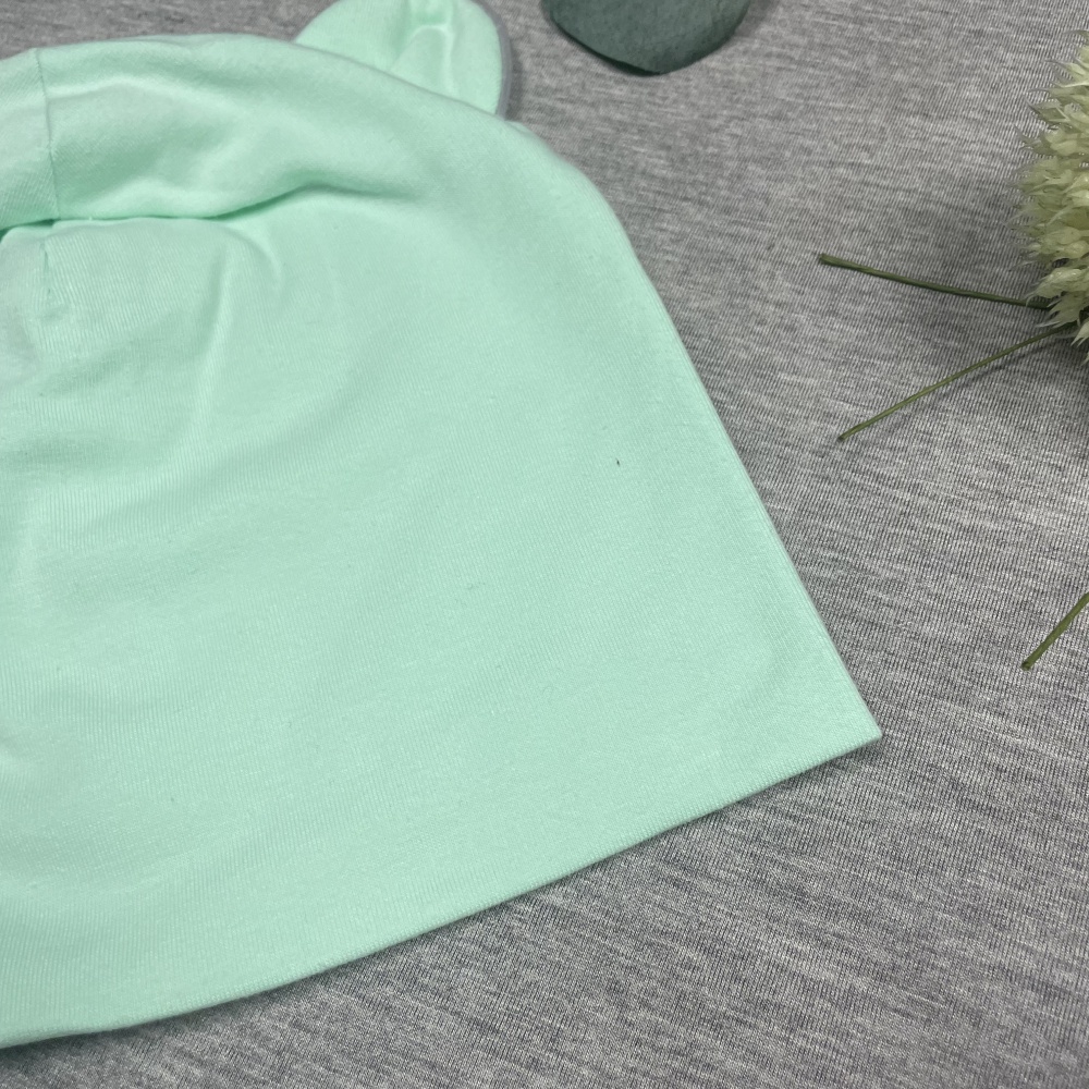Double cotton jersey kids hat with ears, LIGHT MINT
