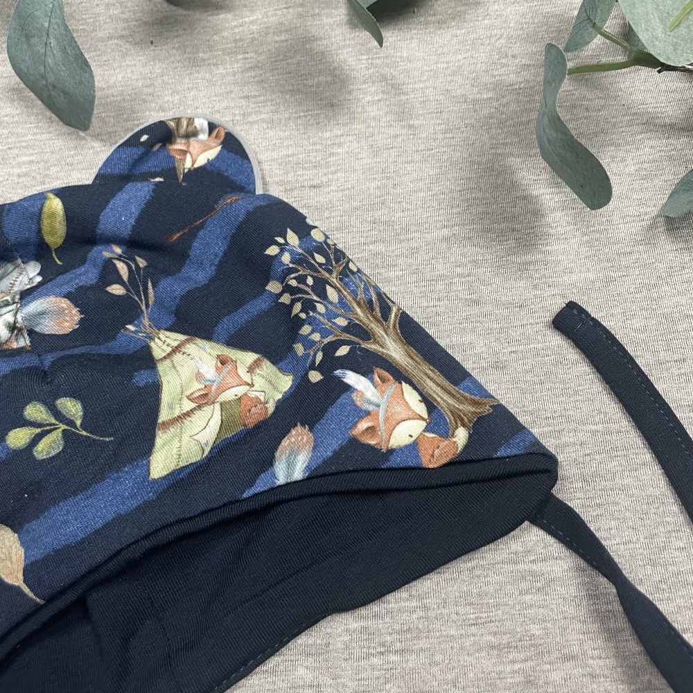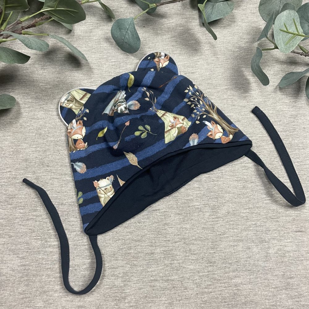 Double cotton children's hat with ears and strings