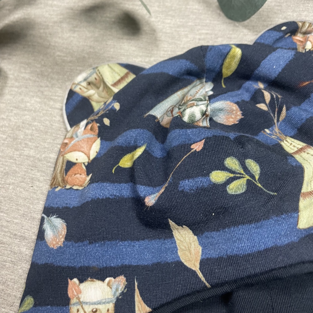 44/46 - fits to the child's head with circumference 44-48, clothing size 80 (9-12 months)