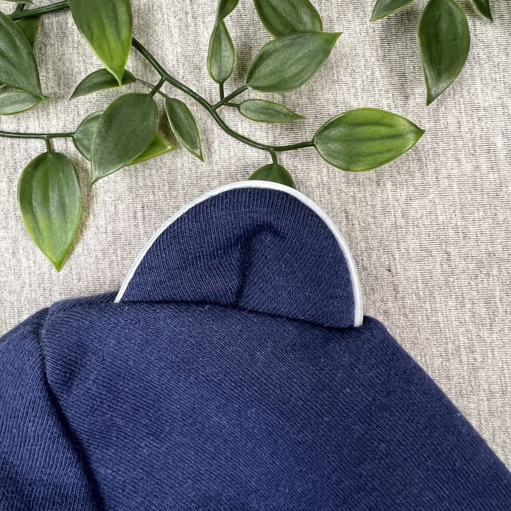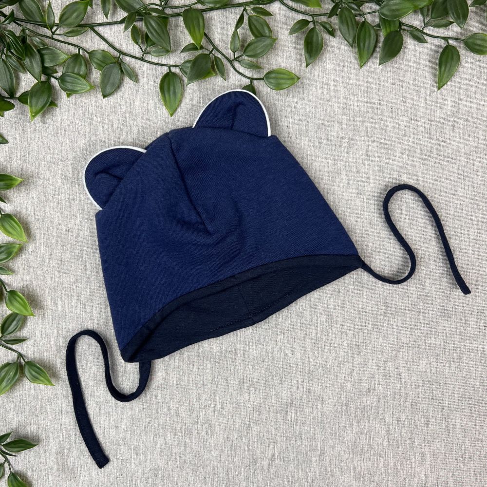 Cotton fleece/jersey kids hat with strings and reflective ears, DARK BLUE