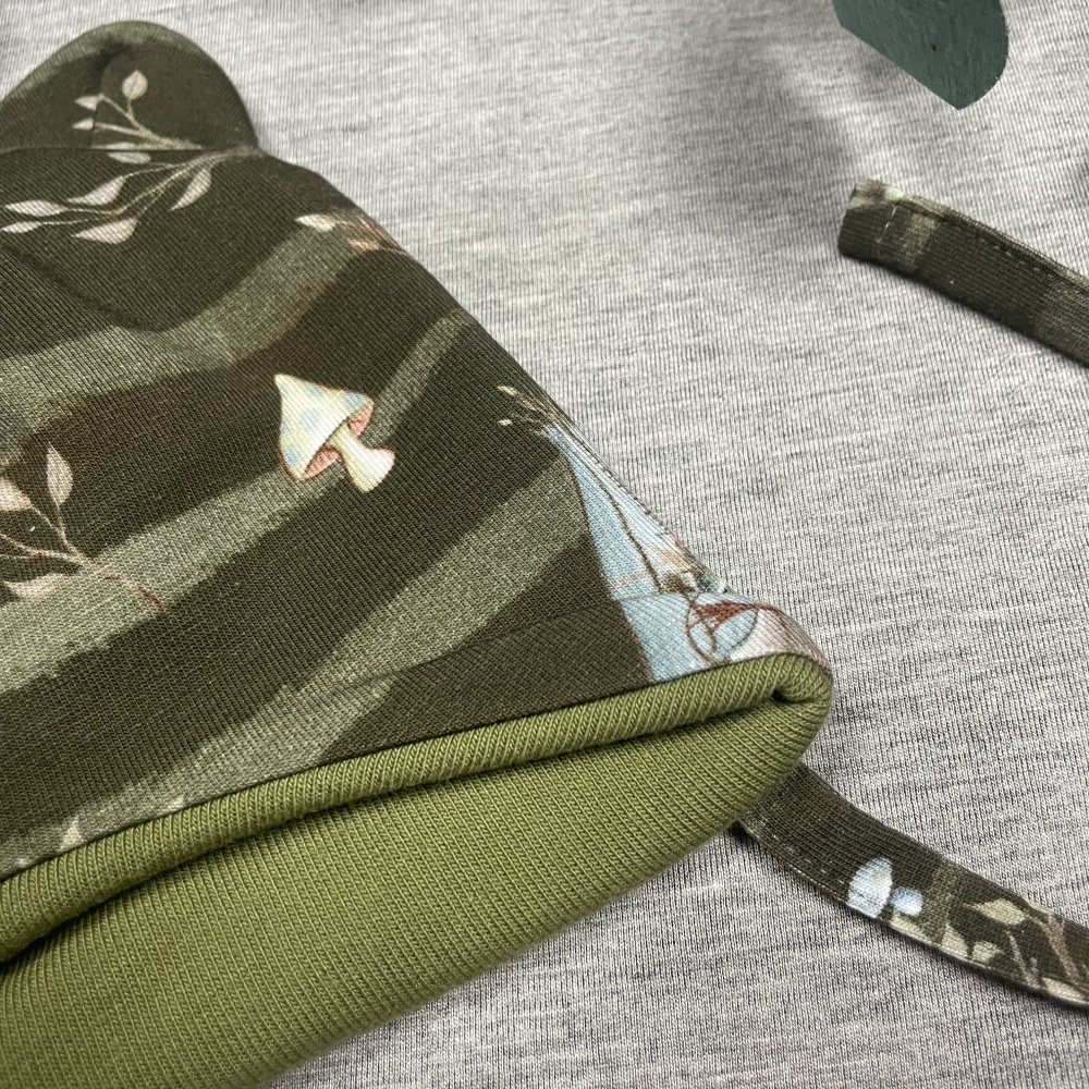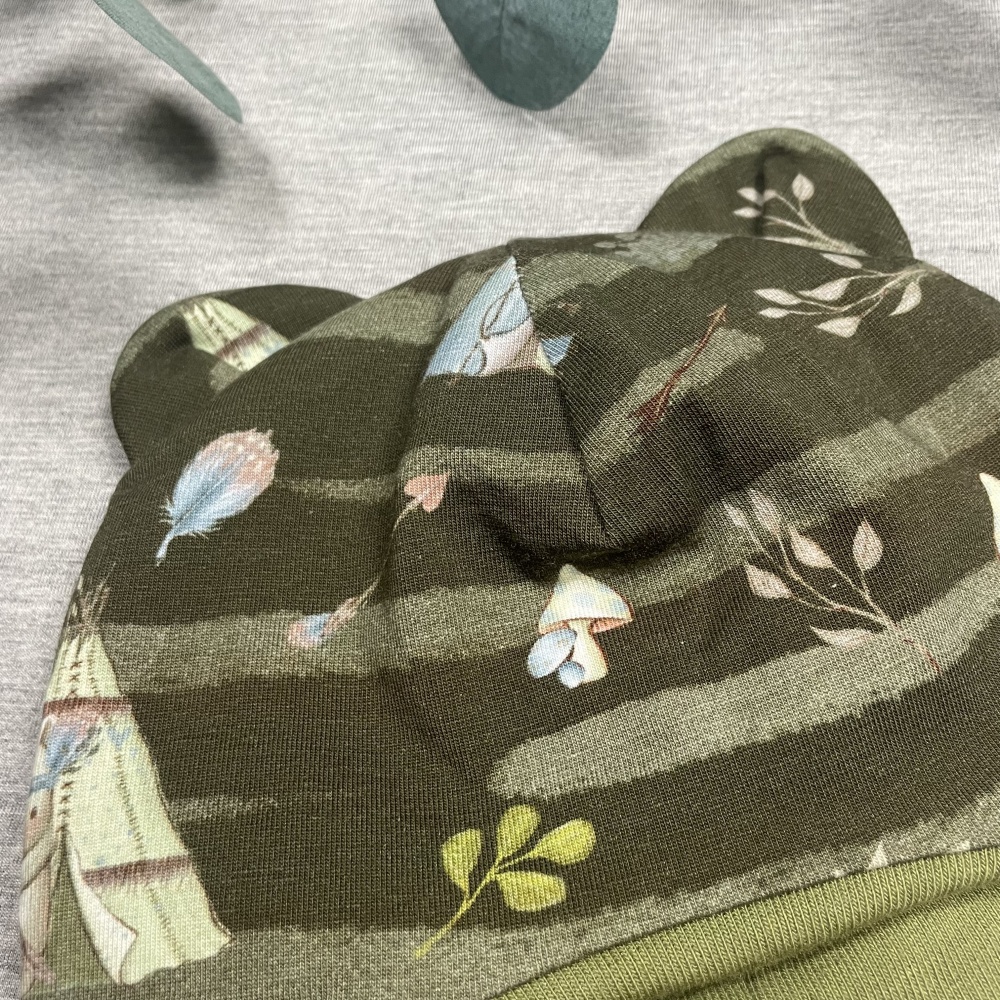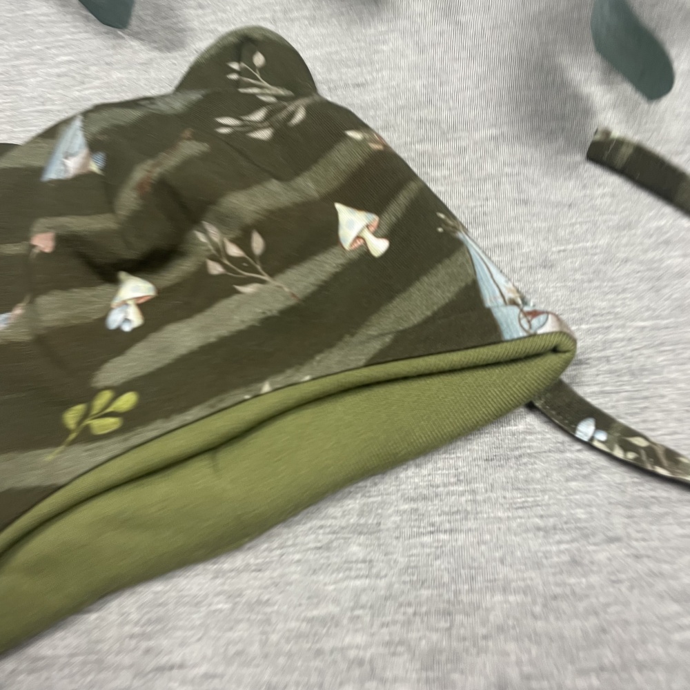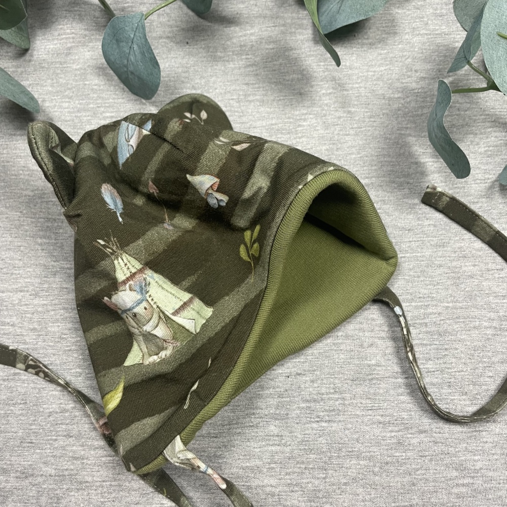 Cotton fleece/jersey kids hat with strings, OLIVE