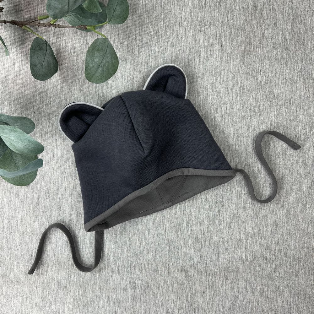 Cotton fleece/jersey hat with strings and reflective ears, GRAY