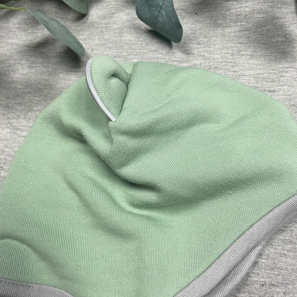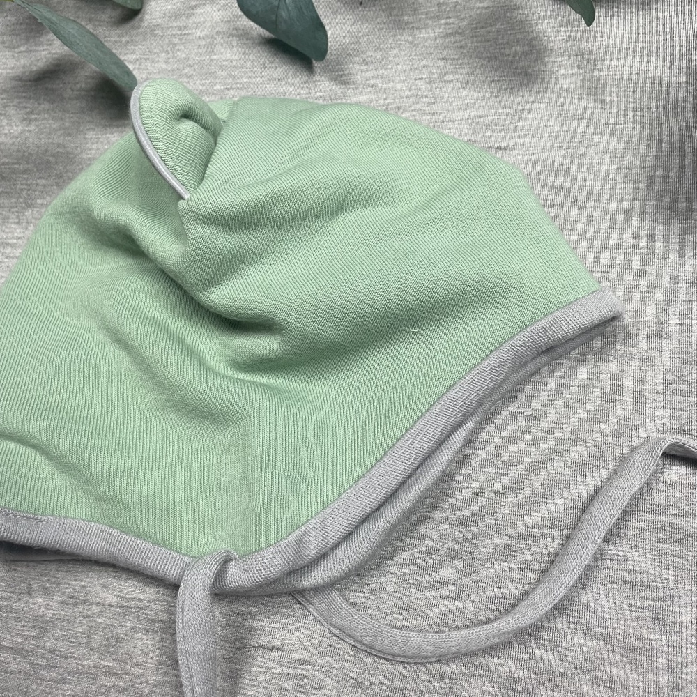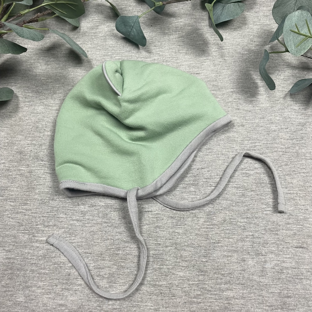 Cotton fleece/jersey kids hat with strings, LIGHT GRAY GREEN