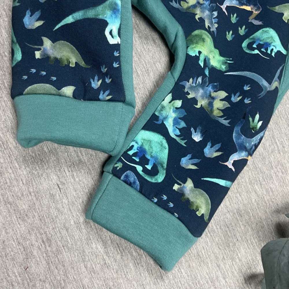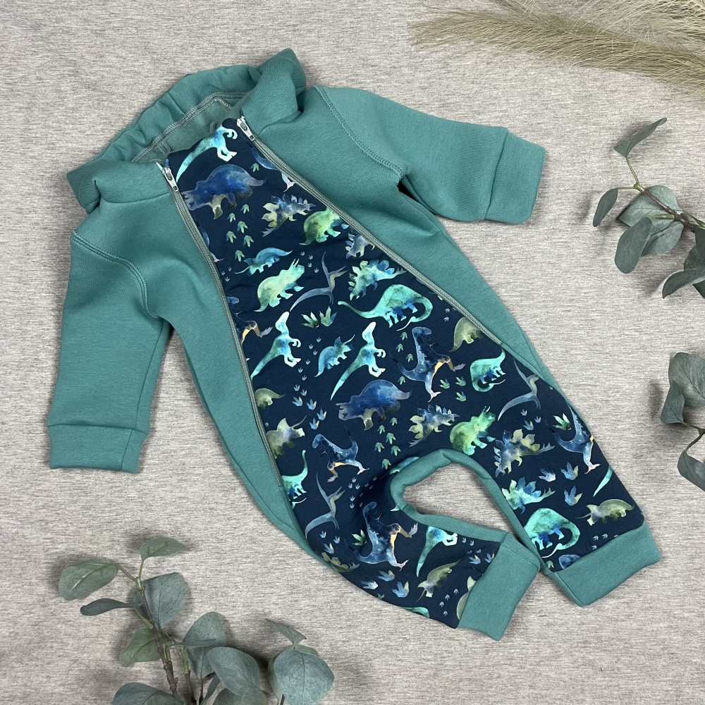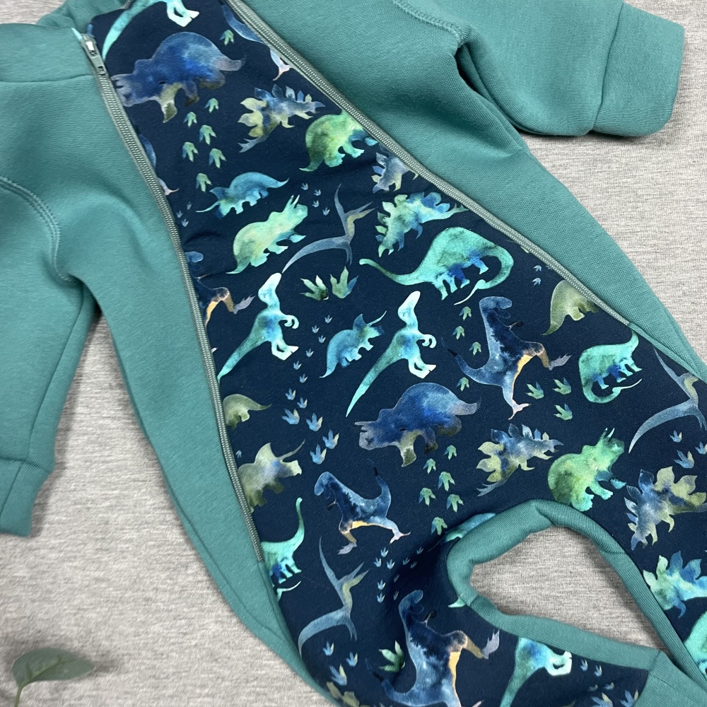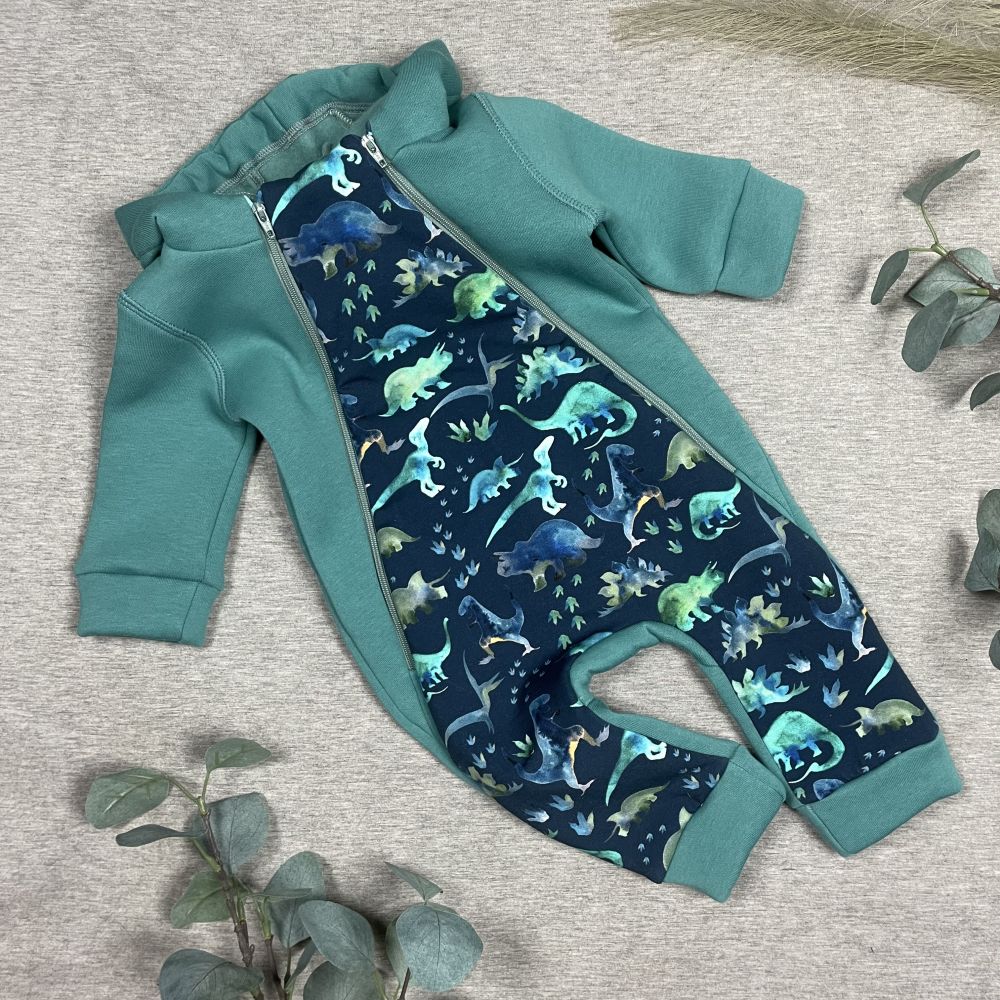 Cotton fleece sweatsuit GRAY GREEN / DINOSAURS