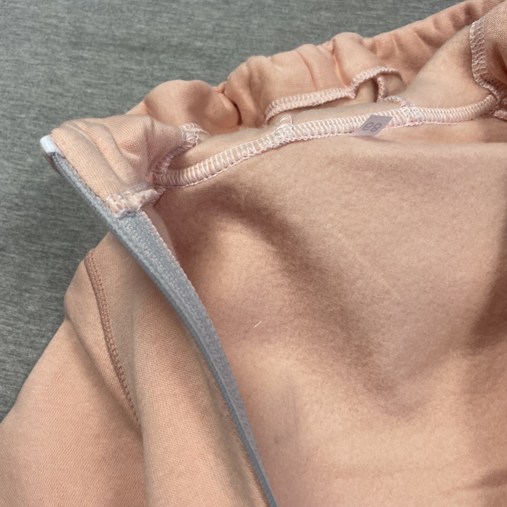 This sweatsuit is made of soft and nice to baby skin brushed back cotton fabric.