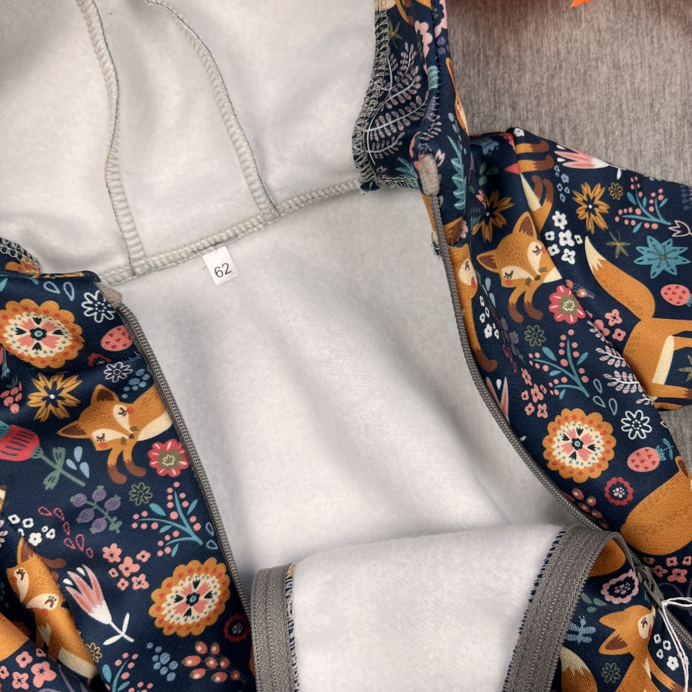 Nice flower print, soft lilac color, natural and warm cotton fleece fabric - this will be your baby girls favorite sweatsuit :)
