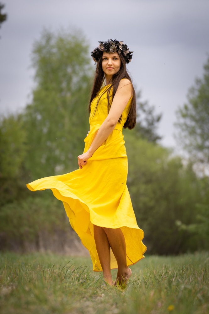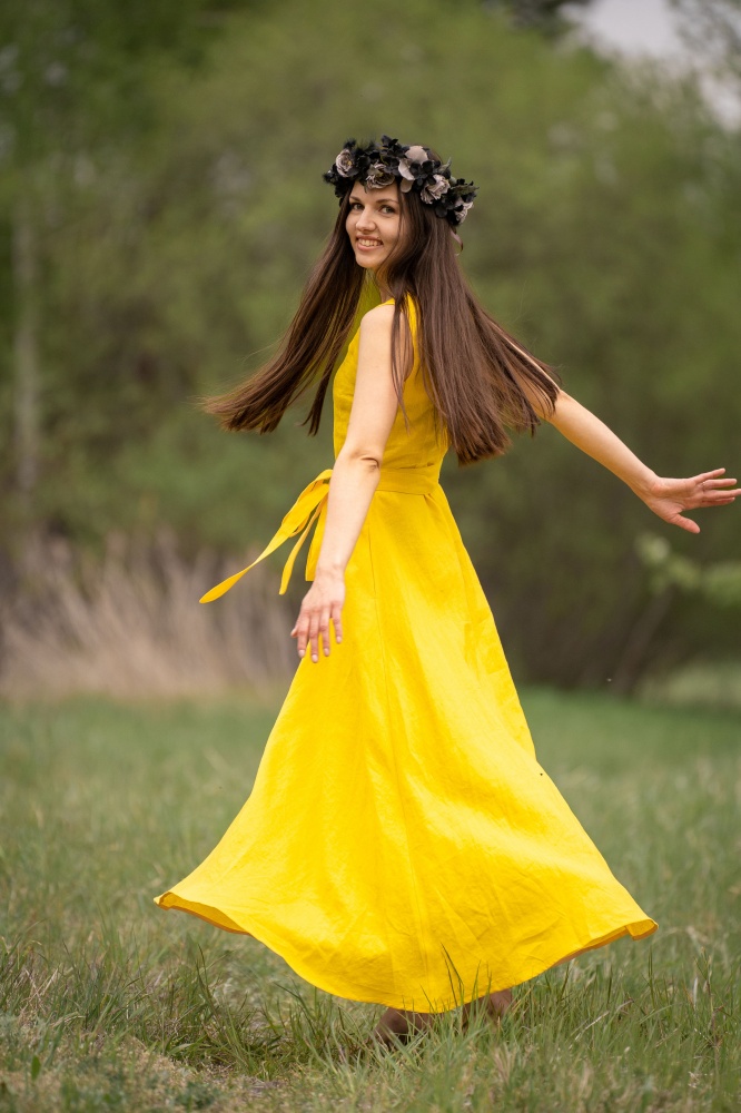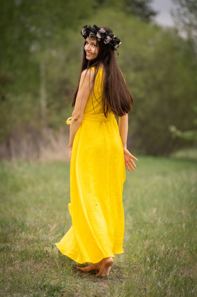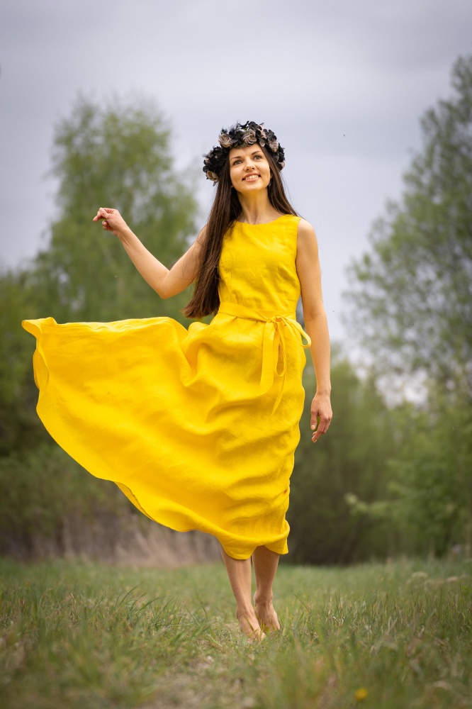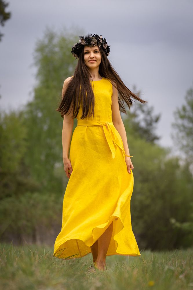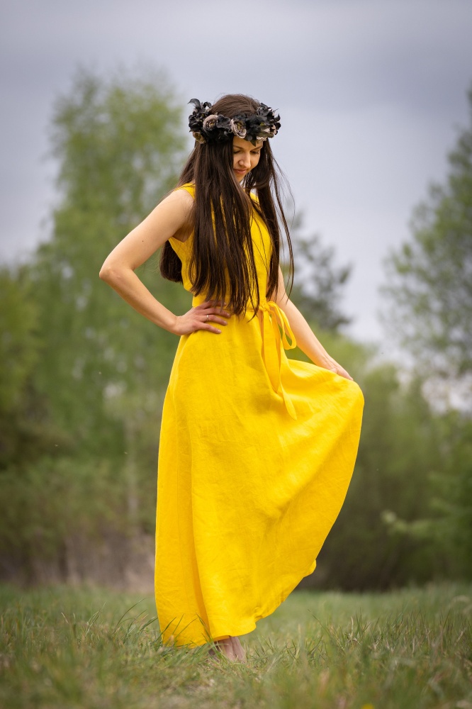 Long linen dress is made from 100% natural, soft and washed linen fabric.