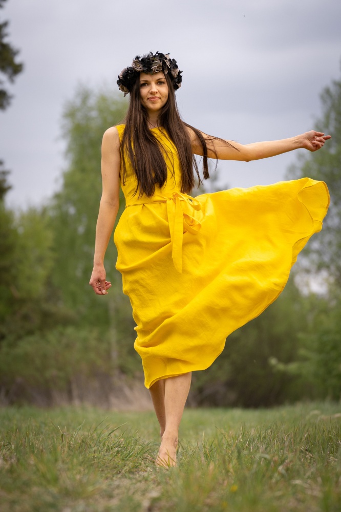 All linen dresses are sewn from softened and pre-washed linen fabric, which is soft and pleasant for the skin. This linen fabric does not shrink or change its shape when washed. Softened linen has a slight creasing effect, so it may not be ironed.