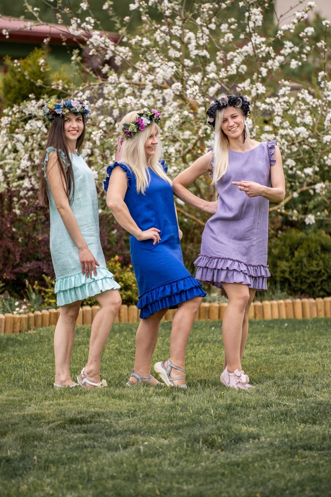 All linen dresses are sewn from softened and pre-washed linen fabric, which is soft and pleasant for the skin. This linen fabric does not shrink or change its shape when washed. Softened linen has a slight creasing effect, so it may not be ironed.