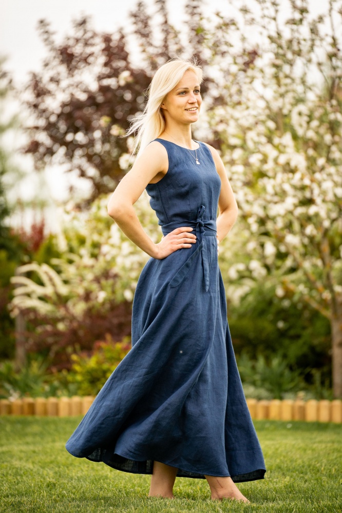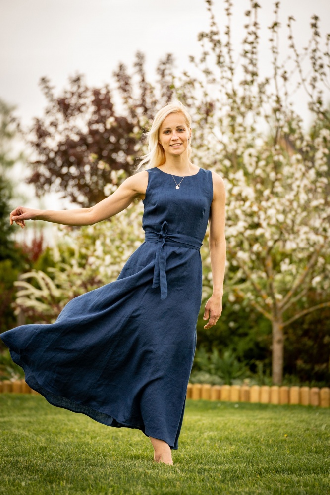 Woman long linen dress "ELĪNA", dark blue