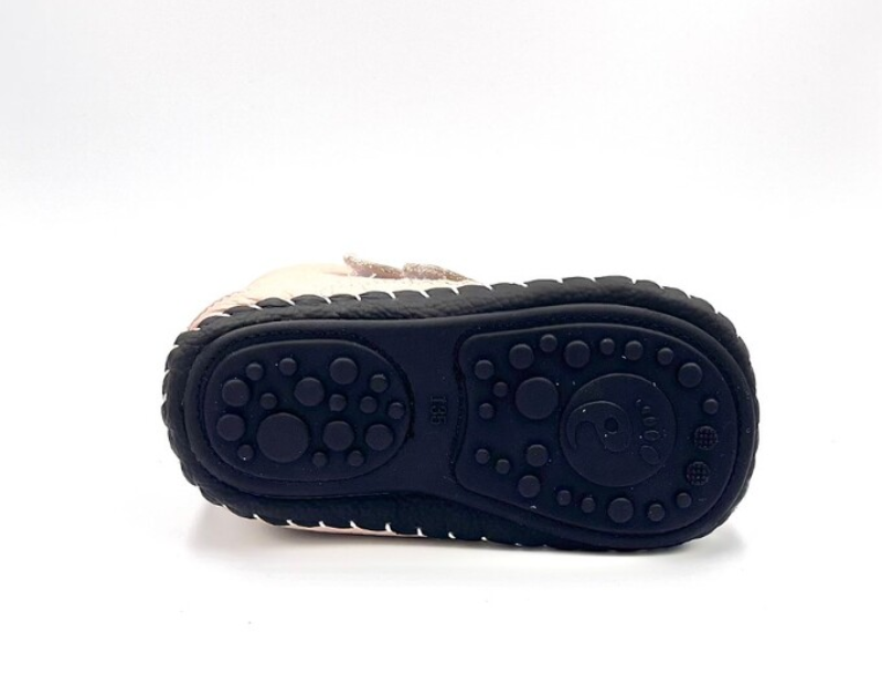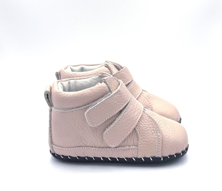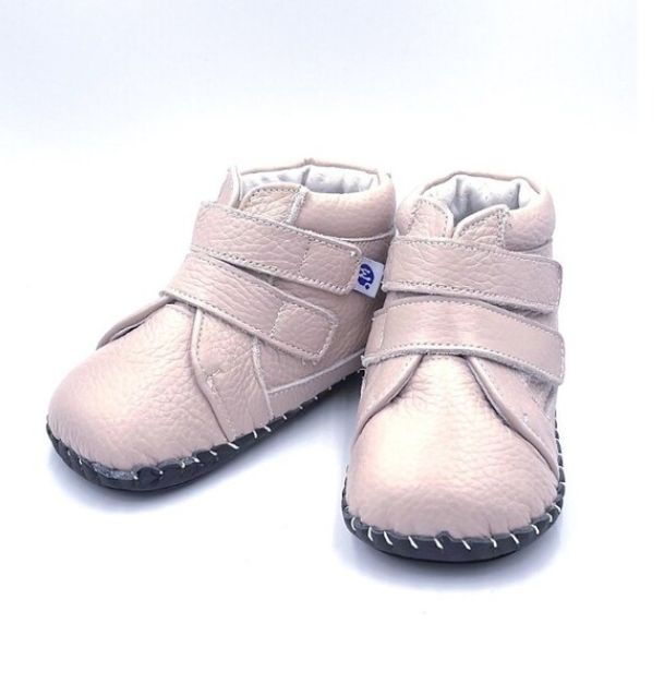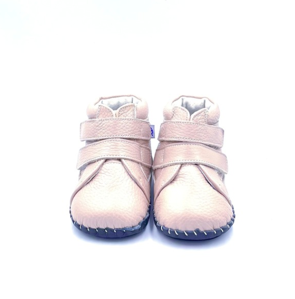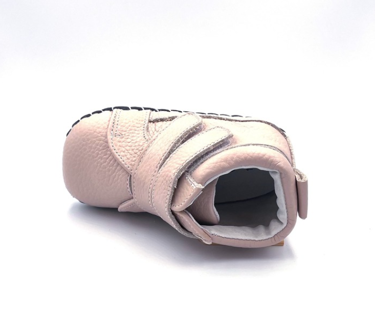 Skylark ankle boots are created for the very first steps and will be perfect choice for the baby's first steps outdoors in spring or autumn. They have a super-soft and flexible leather outsole with a silicone bottom, which will allow to run around freely. They are slightly longer than the ankle, fastened with two velcro straps. The boots are made of genuine leather and have natural pigskin lining.