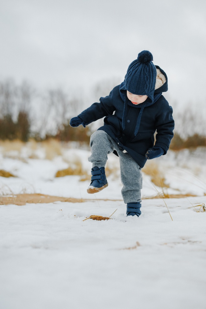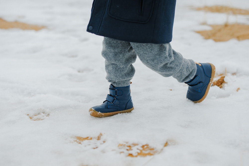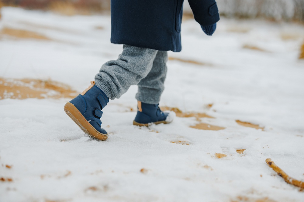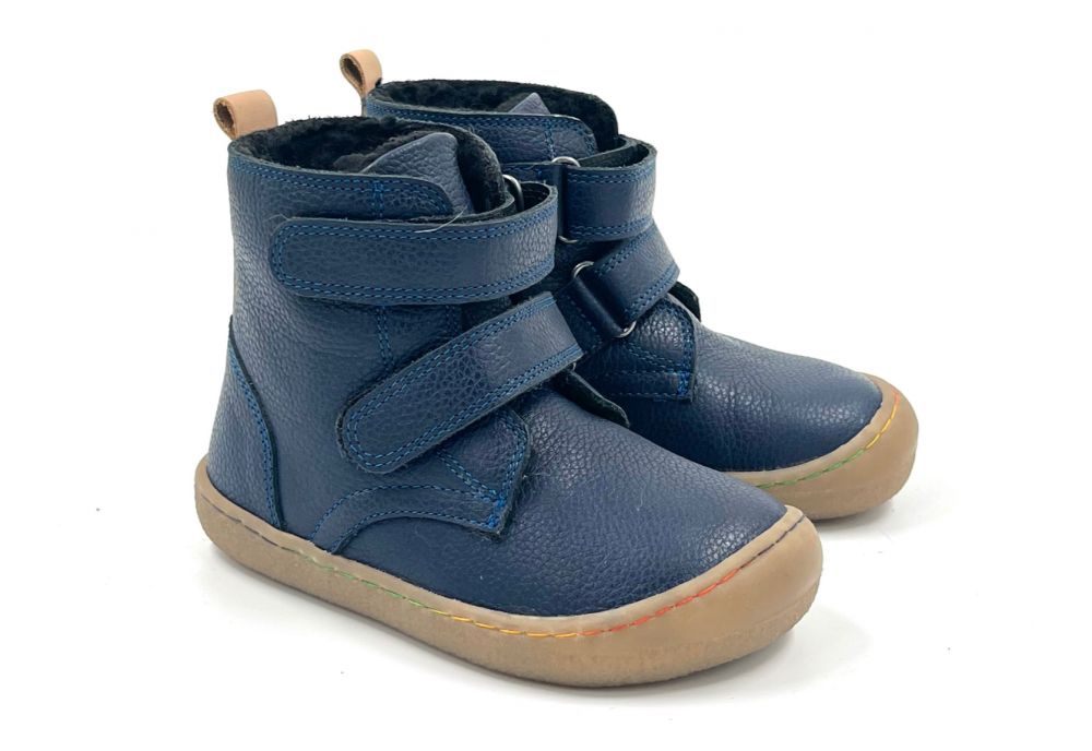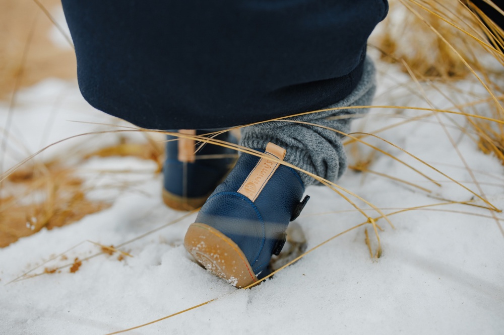 Barefoot Leather Winter Boots for Kids "Robin 2" (navy)