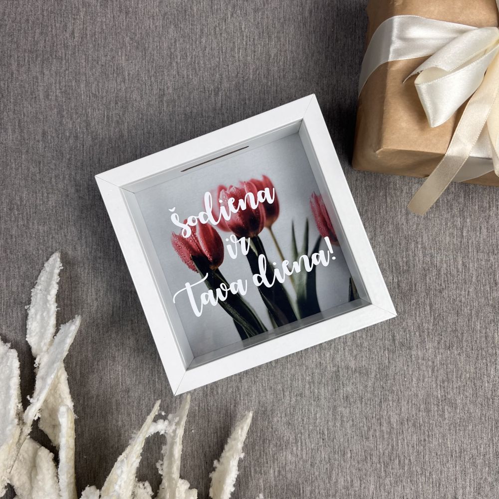 Wooden savings box -TODAY IS YOUR DAY, tulips