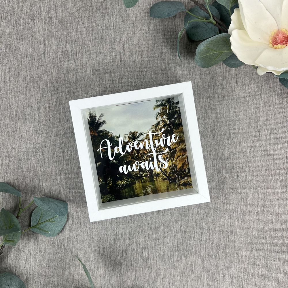 Wooden savings box - ADVENTURE AWAITS