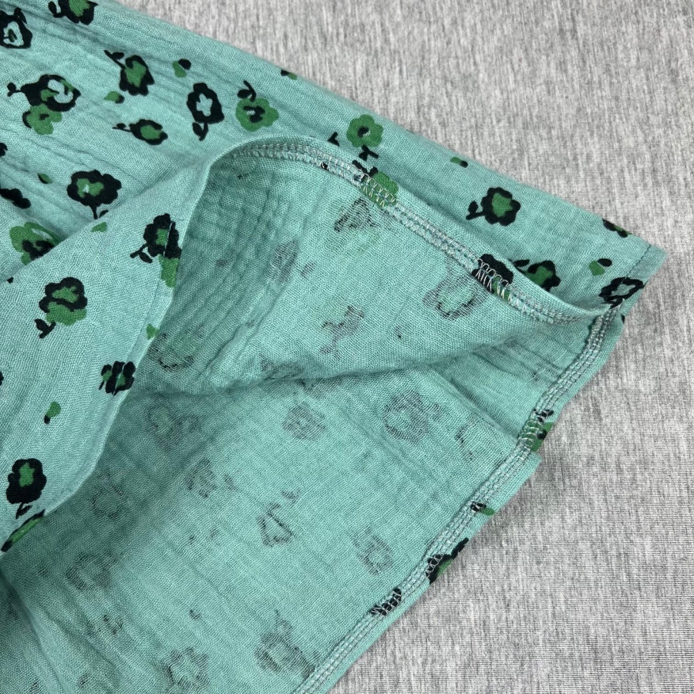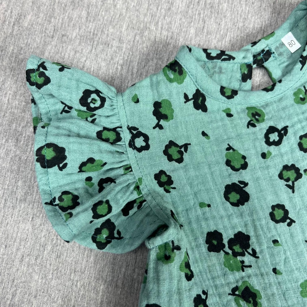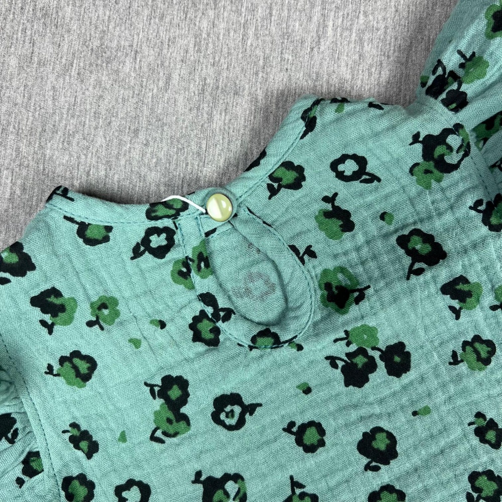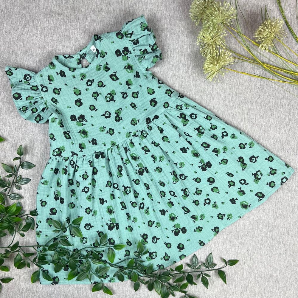 Girl's muslin dress, Flowers on green