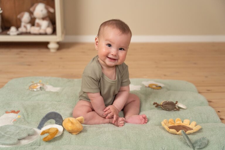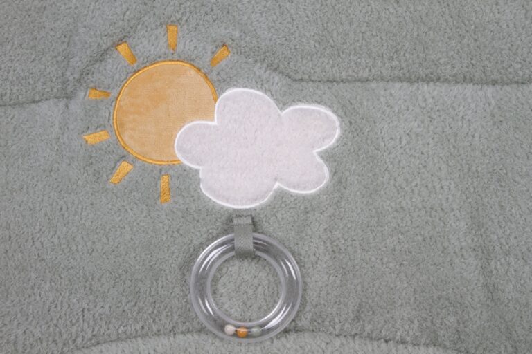 On this soft, padded playpen mat, babies will find themselves at the farmer’s pond. Little Goose and his friends are all around waiting to be discovered. They won’t have time to get bored thanks to the different materials and activities to explore, such as a mirror, rattle and crinkly and hidden toys Perfect for use in the playpen and to take with you when traveling.