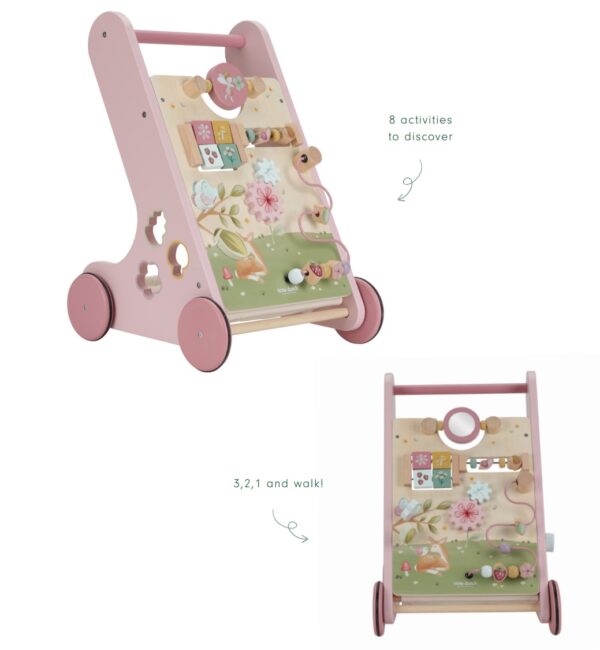 Challenge your little one with the many activities on this beautifully decorated walker. There are 8 activities to discover and master. With its sturdy design, the walker is suitable for children of 12 months and older who are ready for their first steps.