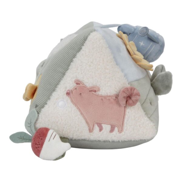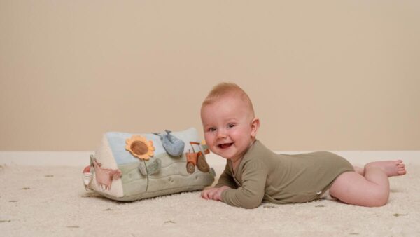This versatile activity triangle takes young children on an adventure while they lie on their stomachs. Along the way, there’s plenty to discover, from the crinkly wings of the chicken to a mirror and a rattling watering can. The product has playful features and fun textures that stimulate your baby’s senses and imagination.