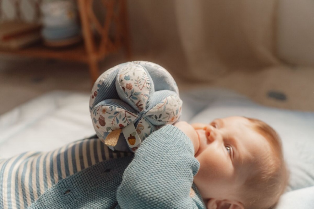 Reach out and grab it! This fun Little Dutch grab ball is a great challenge for your little one. The ball has different textures and patterns to explore and grab. It's easy for little hands to grab and the jingle bell will delight your child as it moves. The soft ball with a pattern from the "Forest Friends" collection has easy-to-grasp knots and various labels that develop senses, grip and keep your baby active on the play mat.