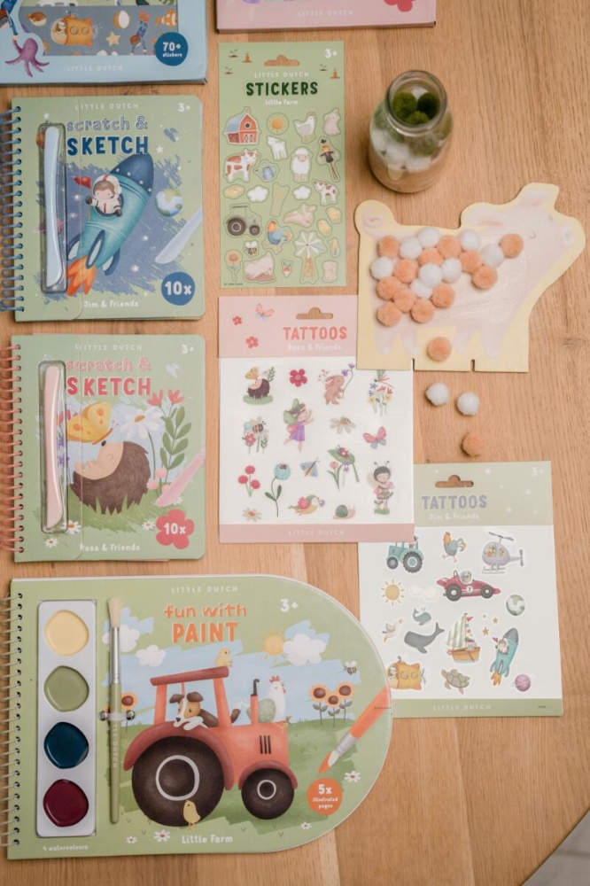 These magical colouring sheets in the 'Rosa & Friends' water colouring book by Little Dutch are a special colouring activity for budding artists.