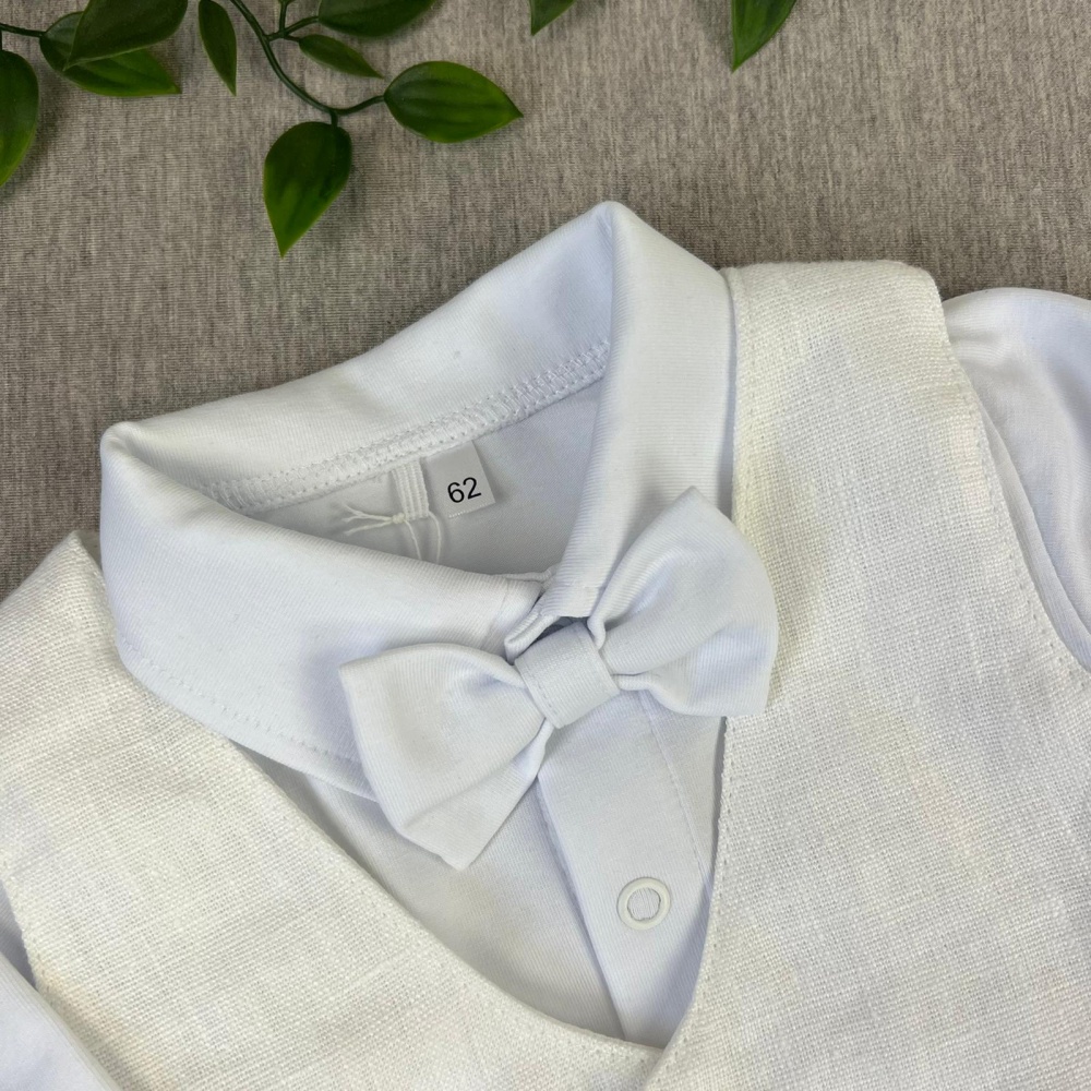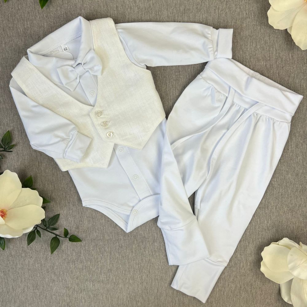 This white baby boy suit is the perfect find for a baptism, blessing, christening, first birthday party or other festive event.