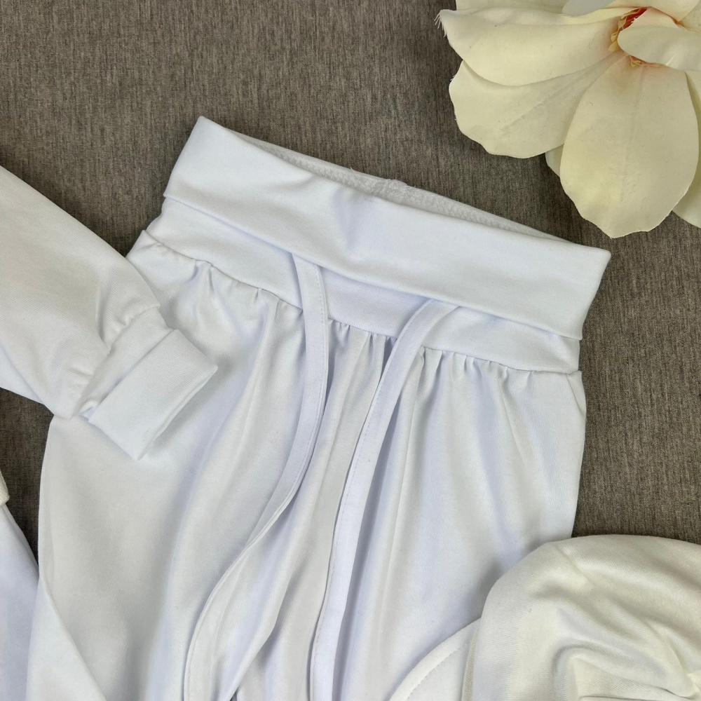- soft and comfortable pants and bodysuit in white colour made of 100% organic cotton,