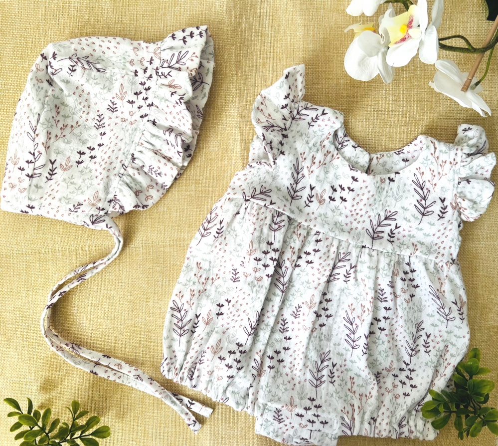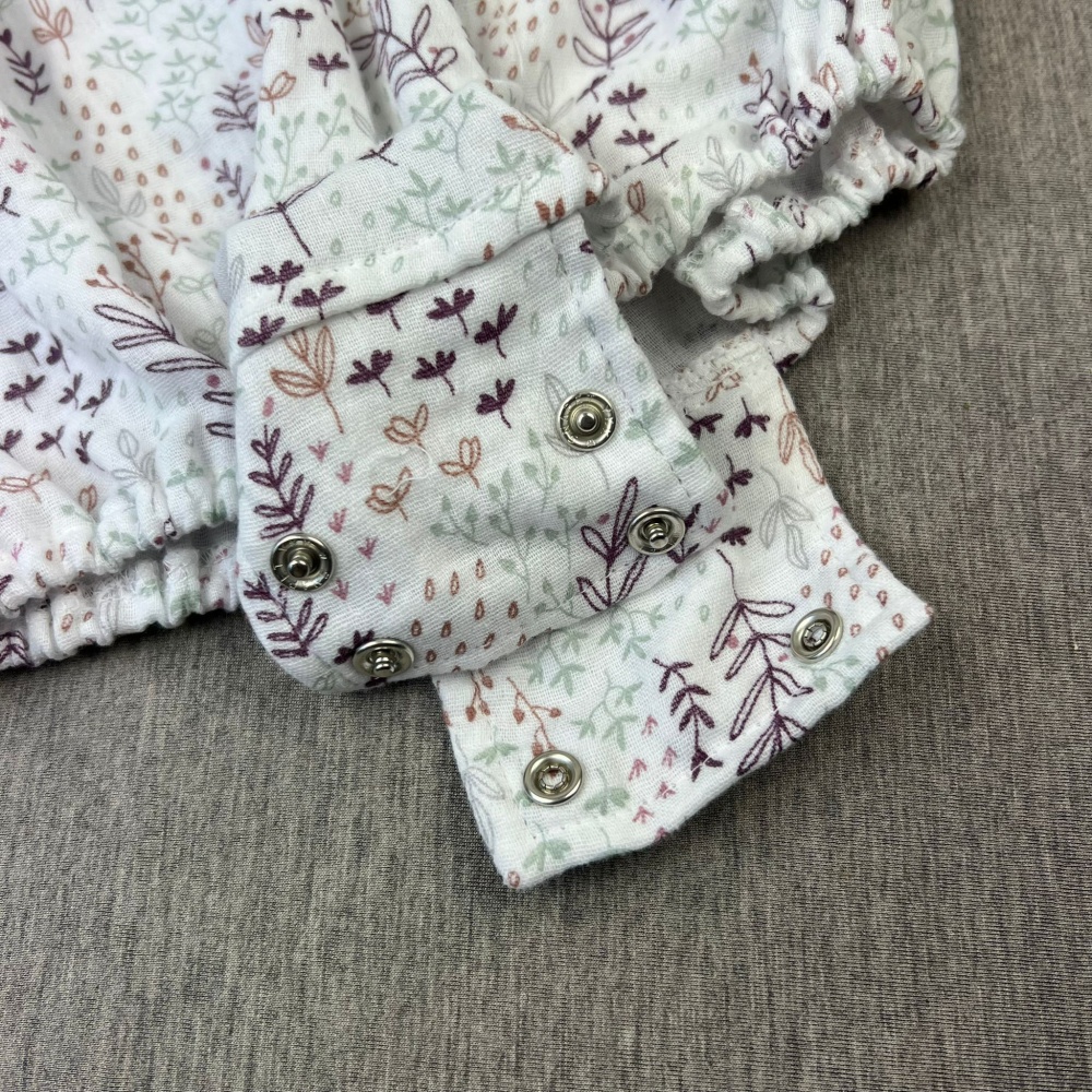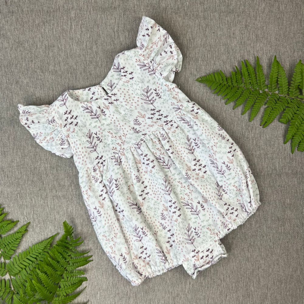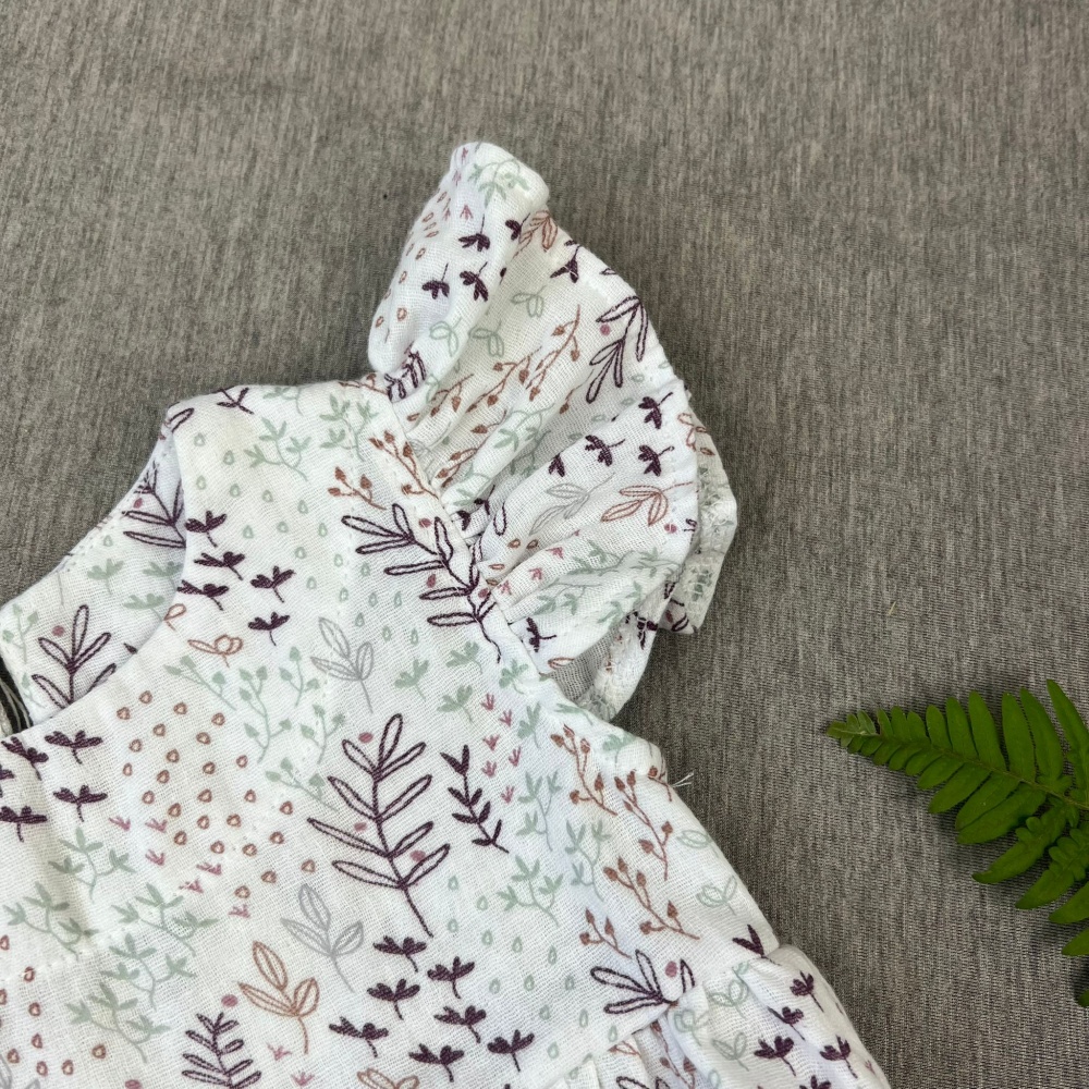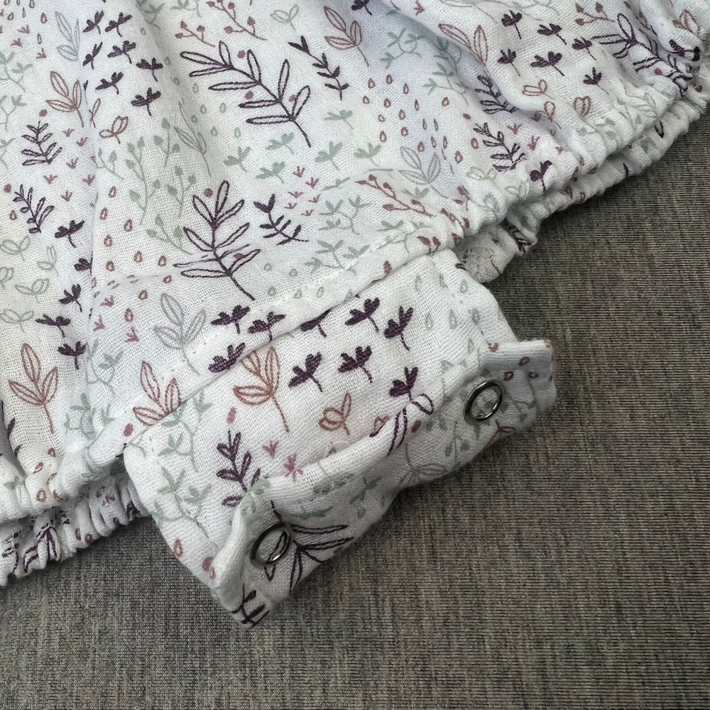 Cotton muslin romper-body White/Leaves