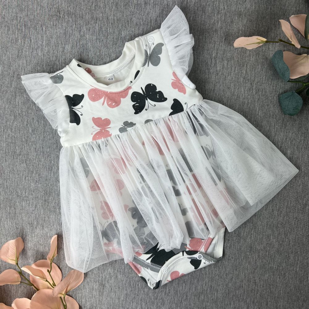 Bodysuit dress with tulle, Butterflies/white