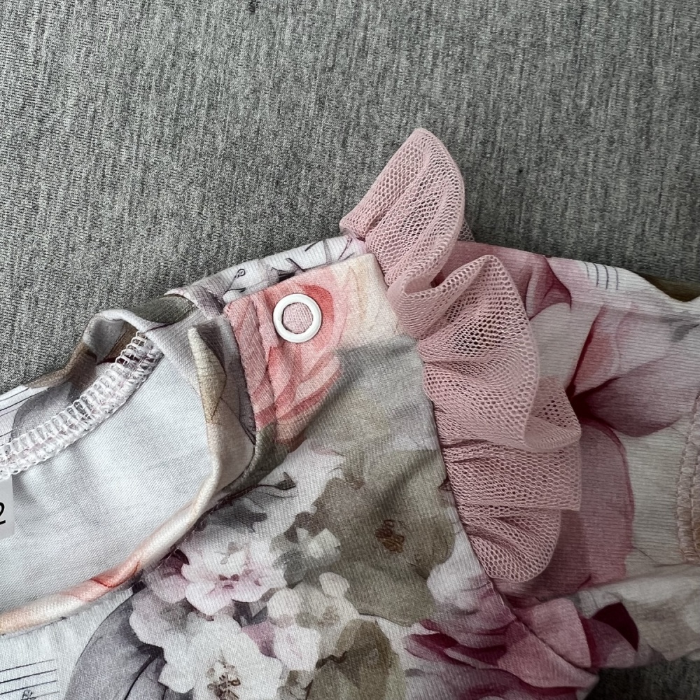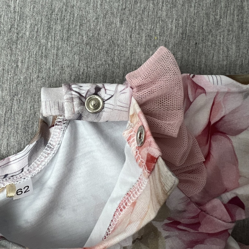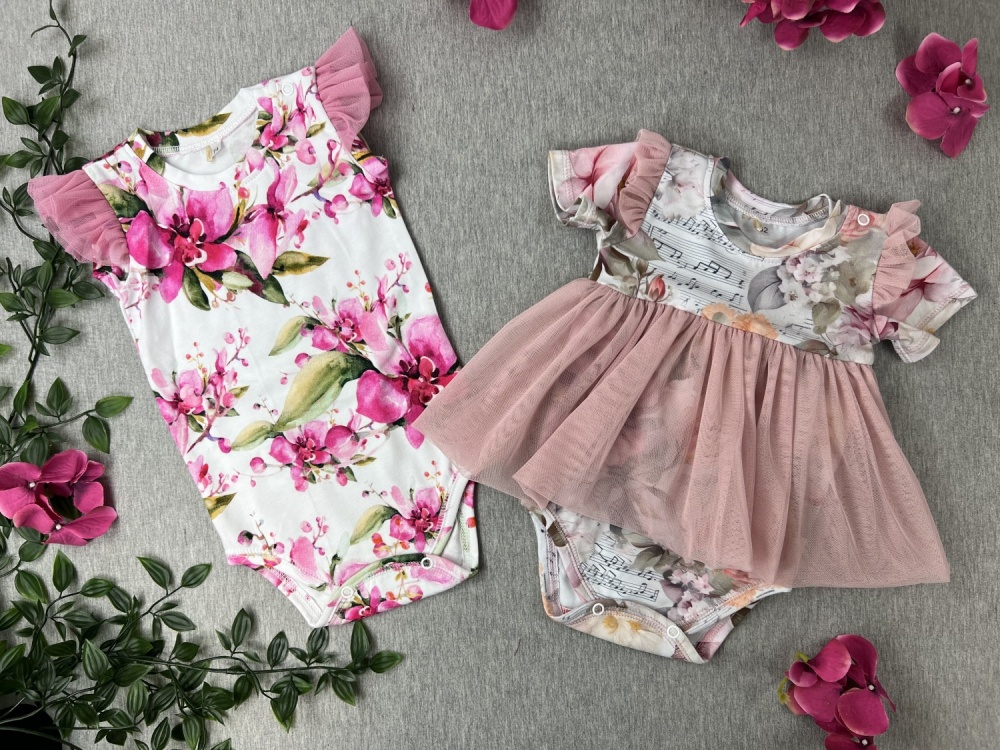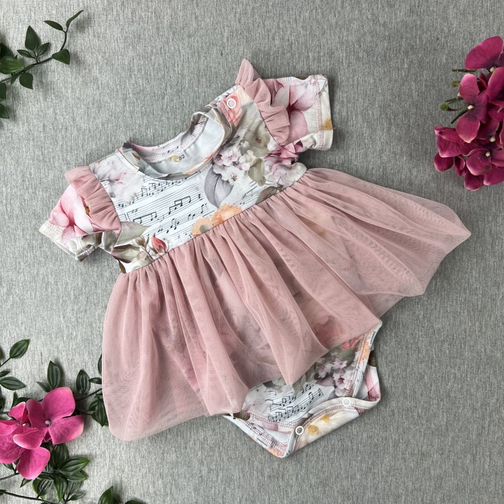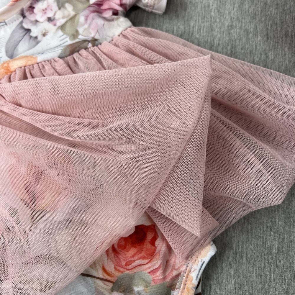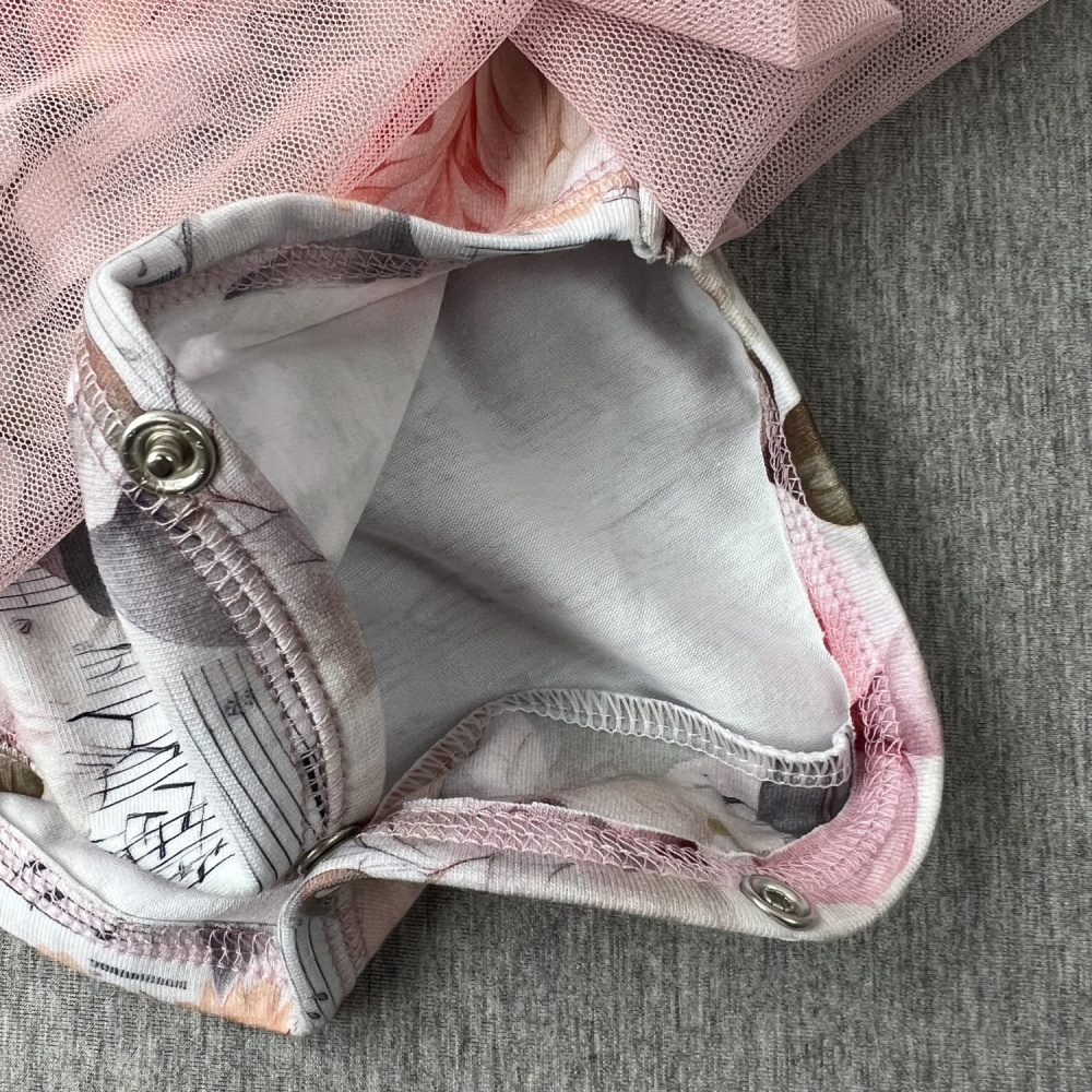 Made of very soft and skin-friendly eco-cotton fabric with a yellow tulle ruffle.
