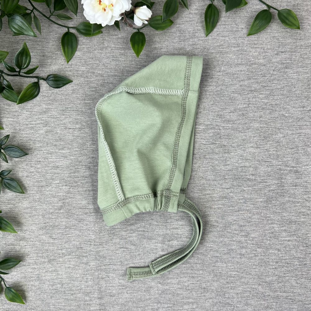 Very soft eco cotton baby hat with strings. Thin and breathable fabric.